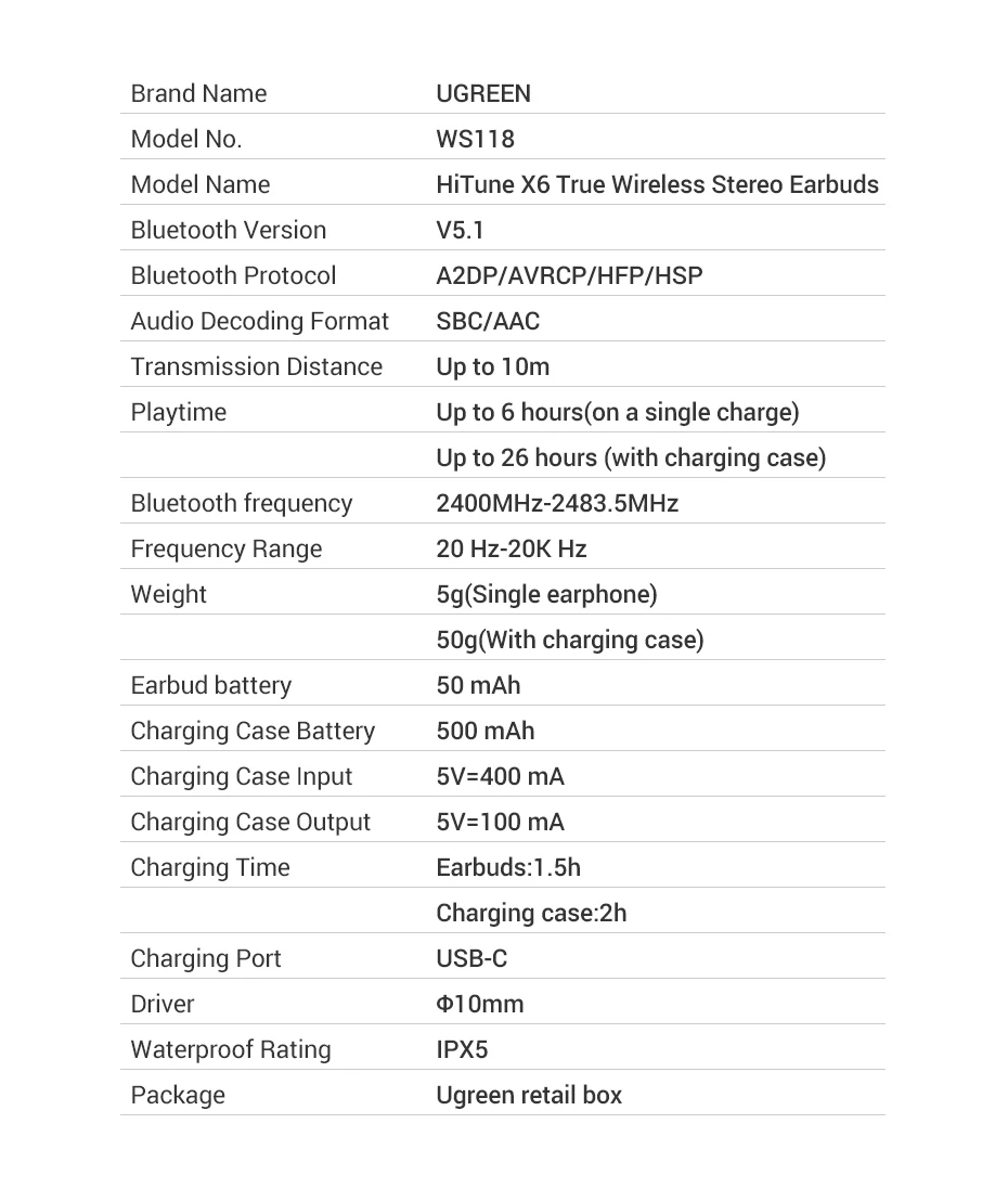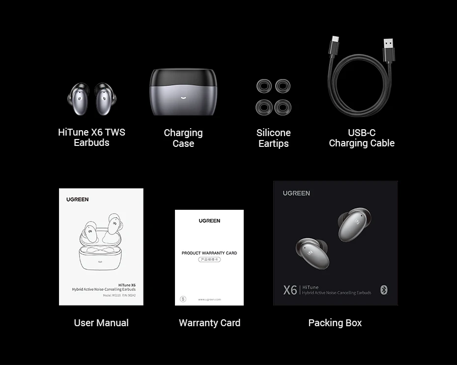 Беспроводные наушники Ugreen HiTune X6, Bluetooth 5,1, TWS наушники-вкладыши, ANC, 35 дБ, гибридные, с активным шумоподавлением, 50 мс