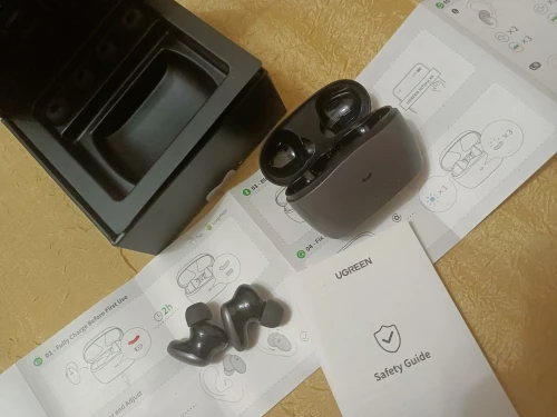 доставка 7 дней .предыдущие были hi tunes с кодеком aptx . таскать по отдельности можно было только левый ,а эти и левый и правый по отдельности. звук вроде норм. микрофоны лучше .на улице шумоподавление работает хорошо.наушники из кейса хрен вытащишь ,да и коробка жидкая какая то