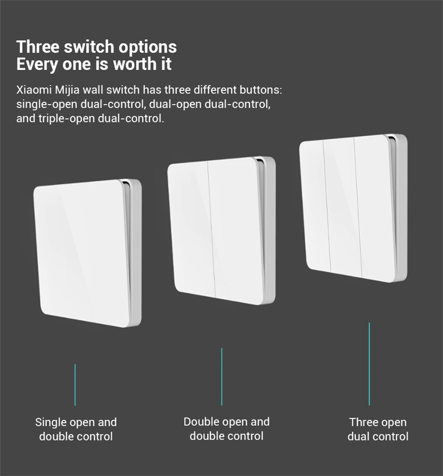 Настенный выключатель Xiaomi Mijia имеет одно открытое двойное управление, двойное открытое двойное управление, три открытых двойного управления, пользователи могут выбрать в соответствии с реальной ситуацией дома.