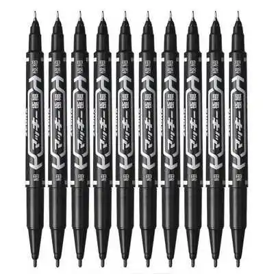 Оптовая продажа, двухсторонняя Перманентная маркерная ручка, тонкие водостойкие чернила с тонким перьевым наконечником, черные чернила 0,5 мм-1 мм, тонкий цвет