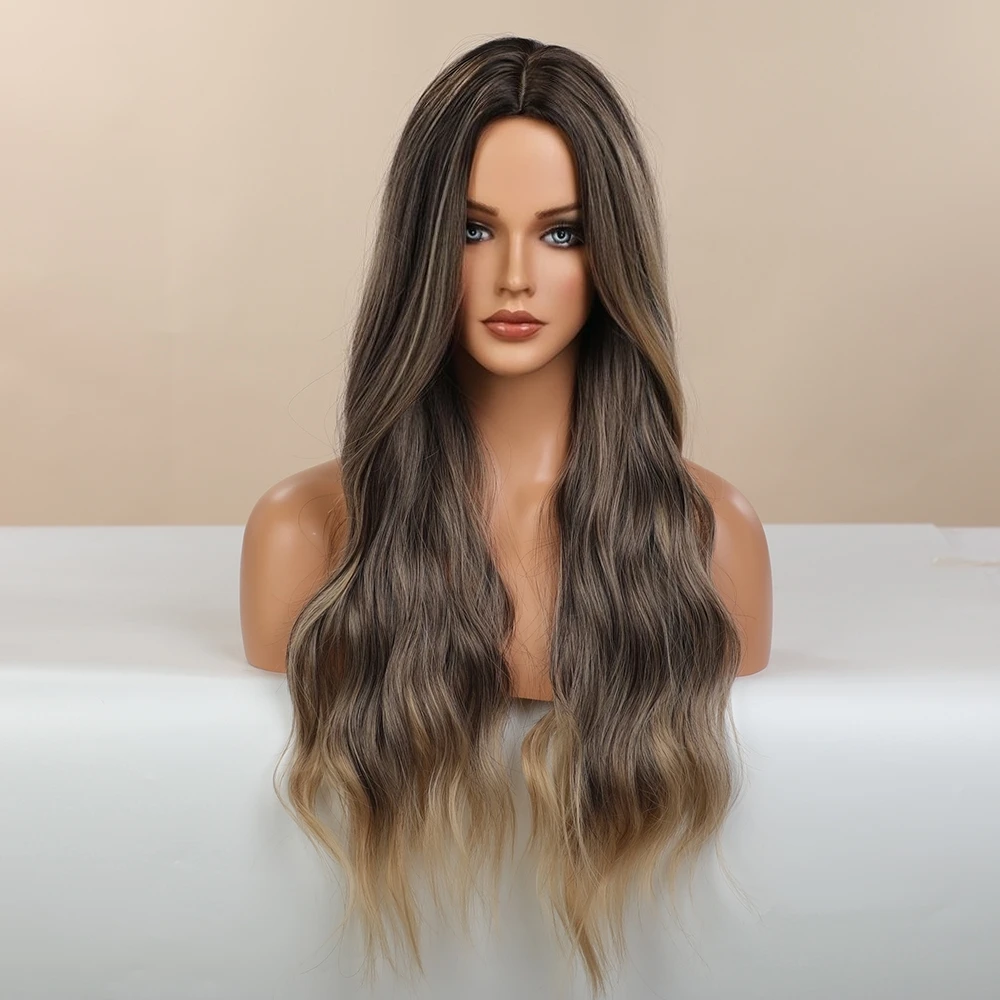 Блонд Единорог синтетический парик длинные волнистые Омбре коричнев...