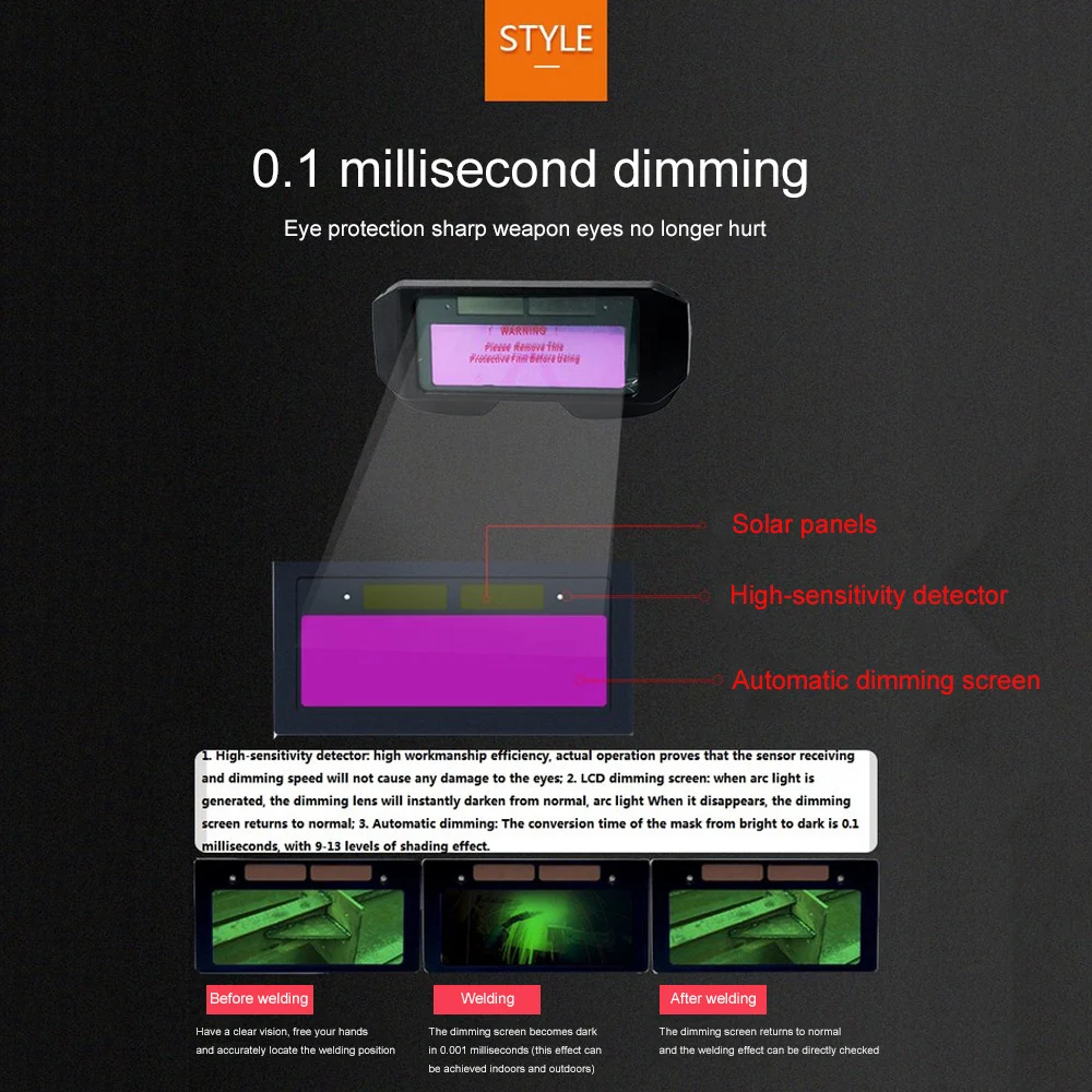 Сварочные очки с автоматическим затемнением, фотоэлектрический шлем...