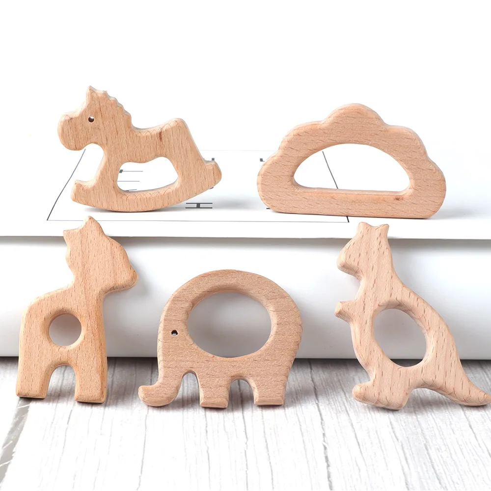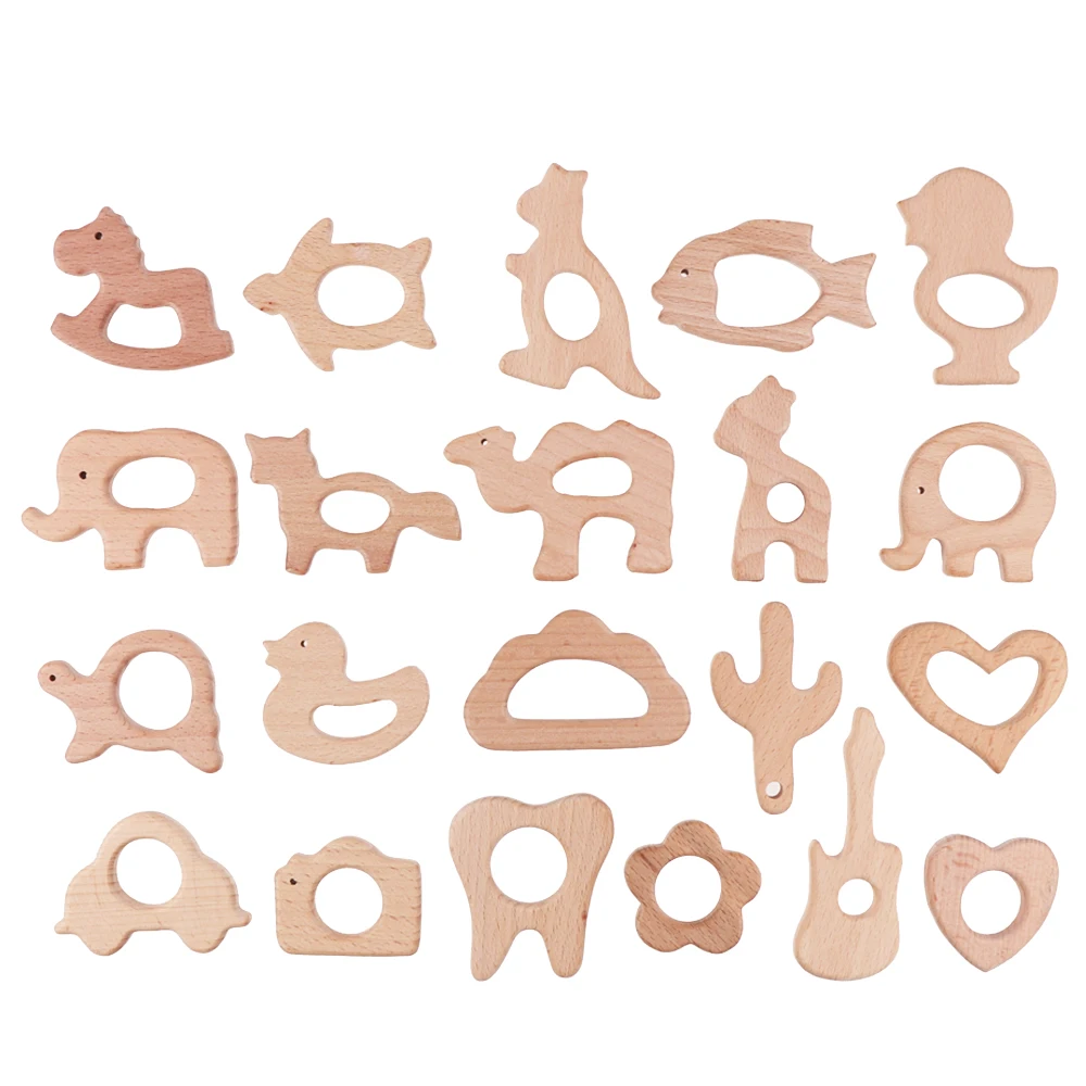 3 шт. детские животные Натуральный Бук Прорезыватель для зубов деревянный Прорезыватель грызуны цветы облака крошечная Удочка Подвеска для соски цепи продукты