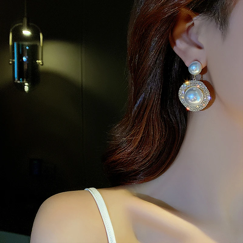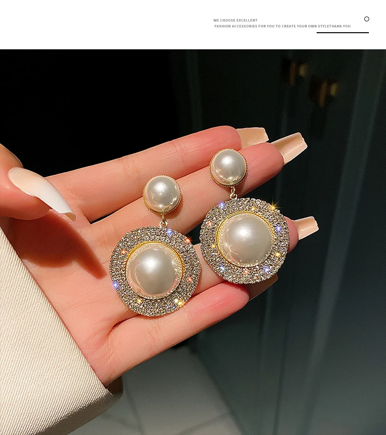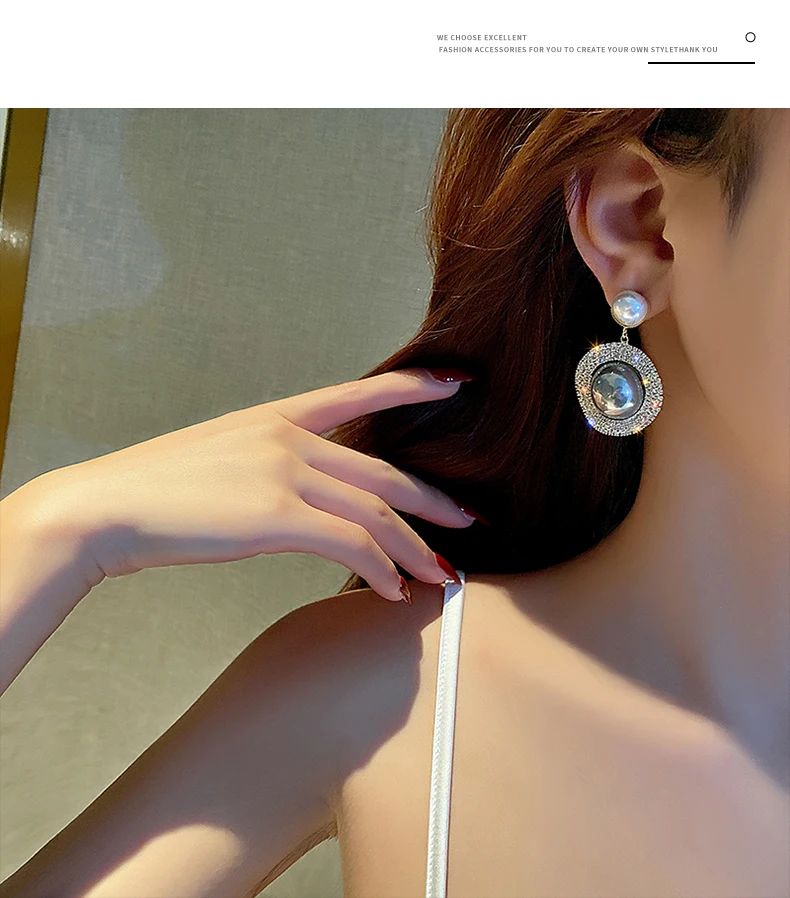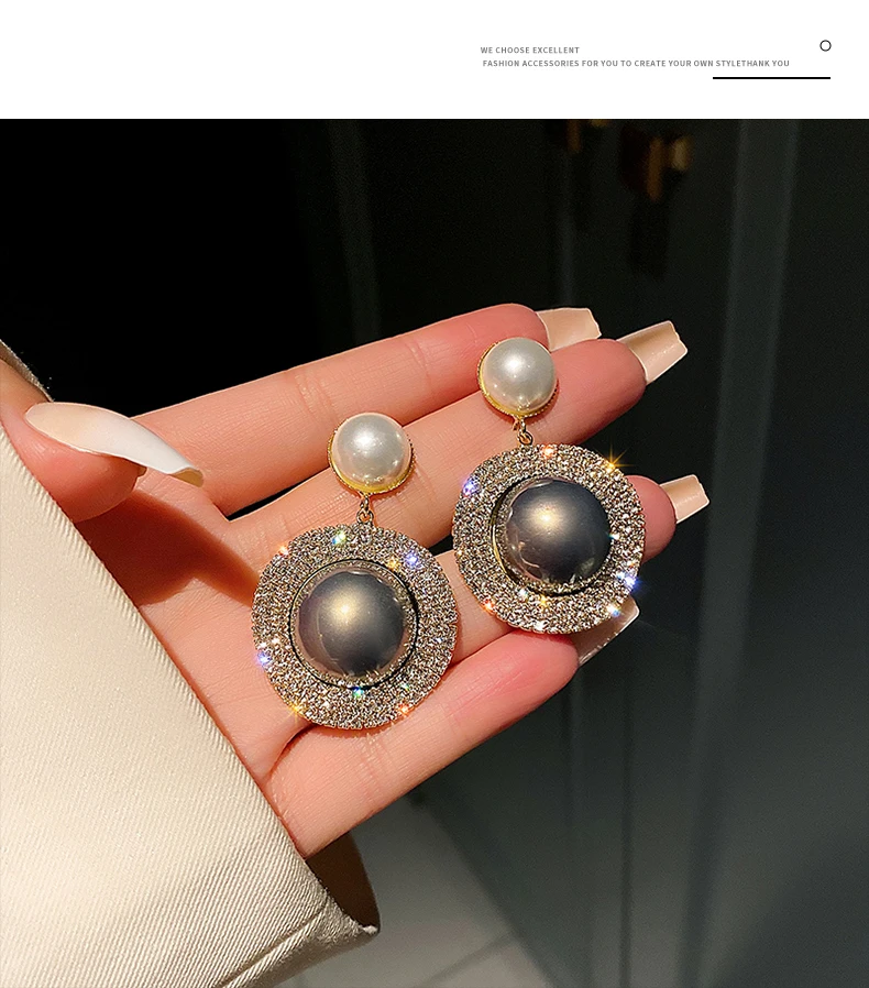 Роскошные блестящие серьги оверсайз с серым жемчугом для женщин, хрустальные золотые круглые жемчужные свадебные висячие серьги, ювелирные изделия, вечерние, подарок
