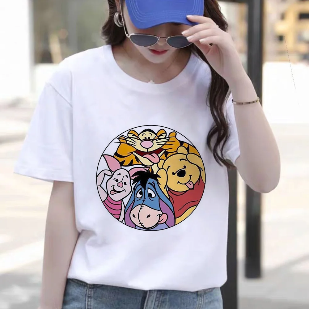 Милые Мультяшные футболки с пухом, Винни, Eeyore и медведь, лучшие друзья, летние женские футболки, Харадзюку, белая одежда с коротким рукавом для девочек