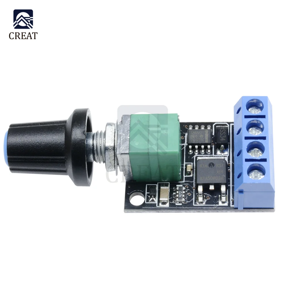 Режим управления: потенциометр контроля скорости (по часовой стрелке открывается, продолжает вращаться по часовой стрелке с 1% до 99% скорости)