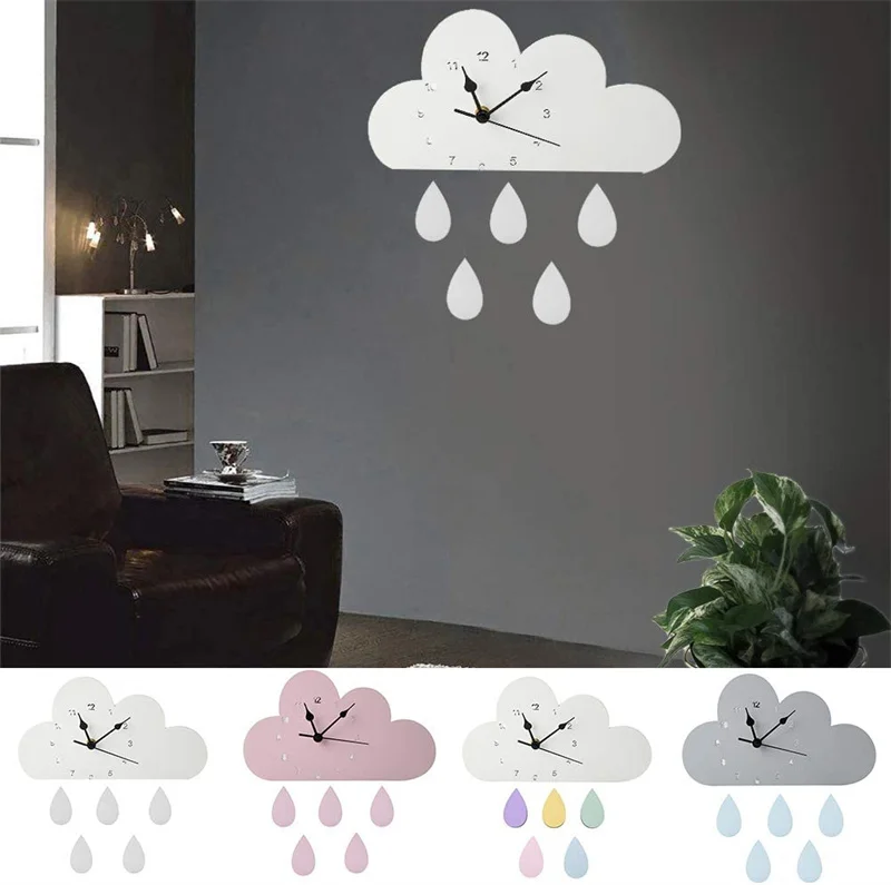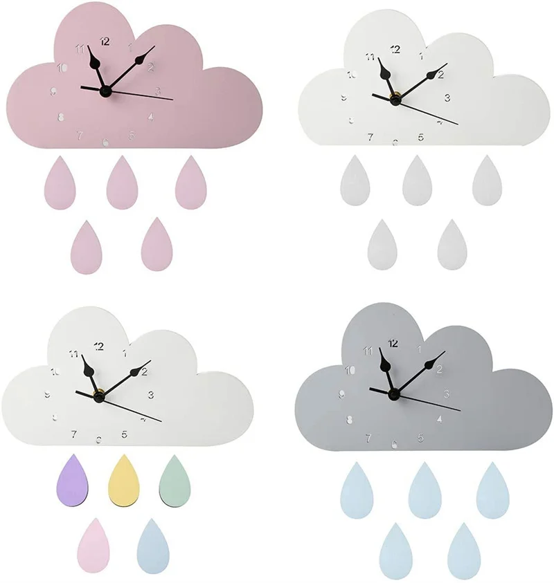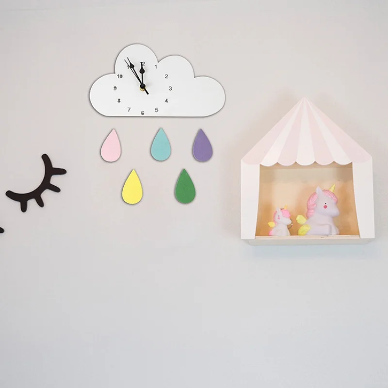 Скандинавские милые облачные радужные настенные часы в форме дождя, украшения для детской комнаты, деревянные настенные украшения для девочек, товары для домашнего декораХарактеристики: