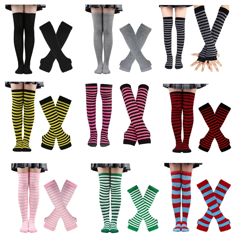 Полосатые рукава с отверстиями для пальцев, до колена, носки для косплея, рождественские эластичные перчатки без пальцев, чулки M6CD