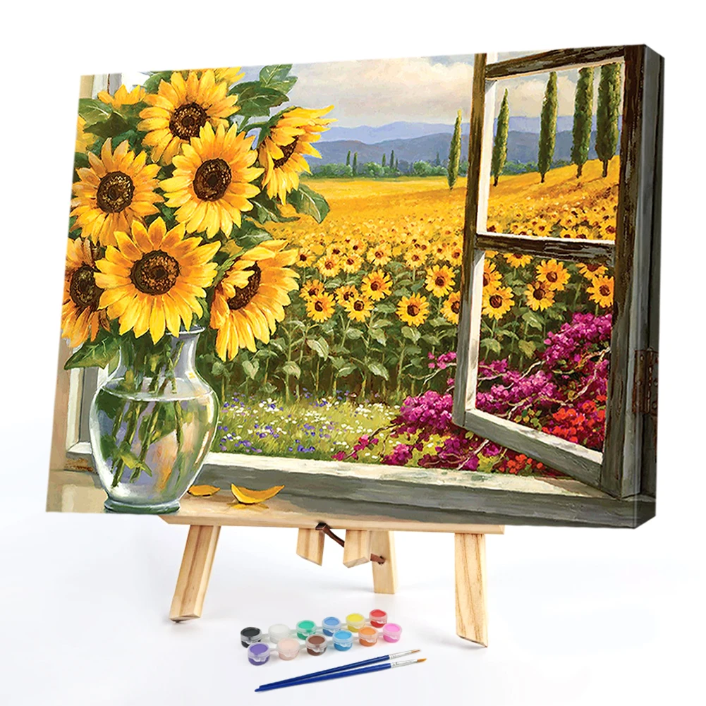 DIY масляная краска по номерам Подсолнух узор кодовая ручная краска ed акриловое Рисование домашнего декора