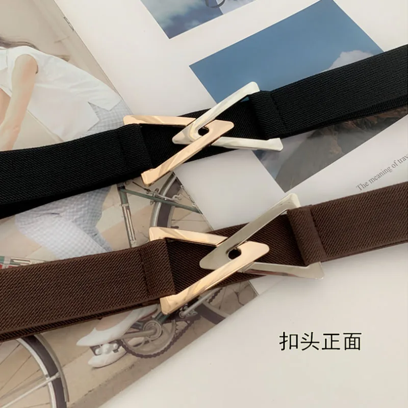Женский треугольный ремень с пряжкой, новые эластичные золотые ремни для женщин, пояс с металлической пряжкой, женский пояс для платья, широкий пояс