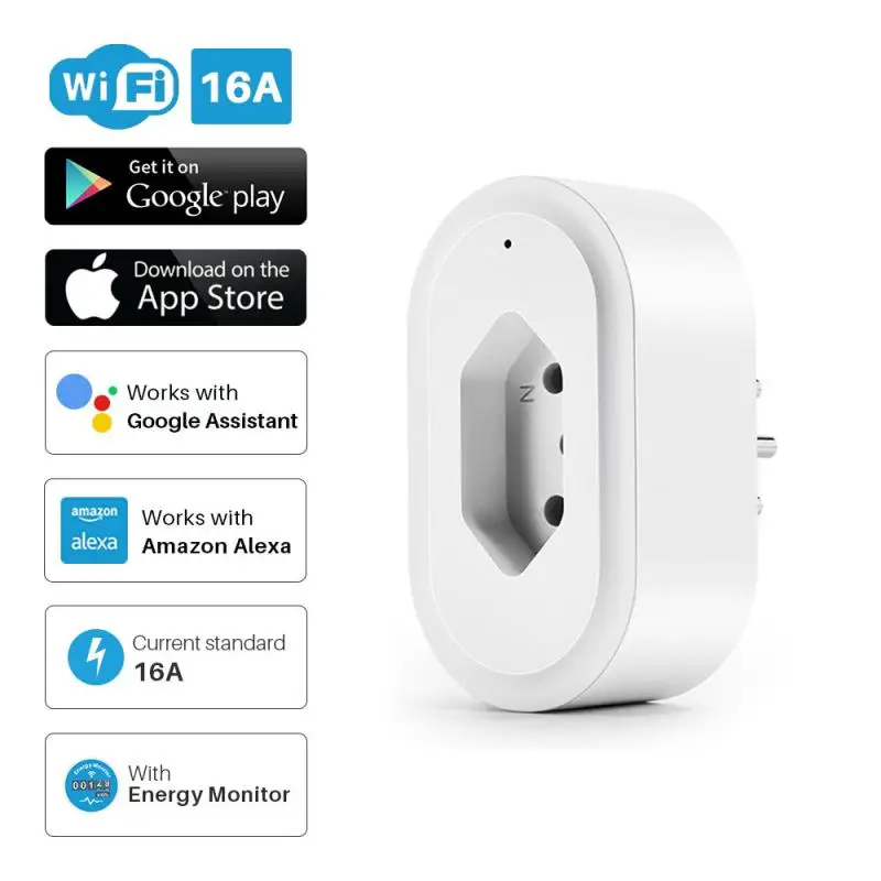 Умная розетка, Wi-Fi, Бразильская интеллектуальная розетка с монитором энергии, дистанционное управление через приложение Tuya, работает с Alexa, Google Home