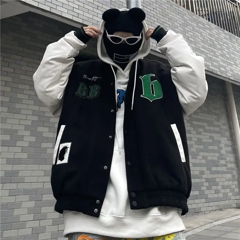 Европейские и американские ретро куртки с Вышивкой Букв Женская куртка Y2K в стиле Хай-стрит хип-хоп бейсбольная форма Свободная куртка с вышивкой