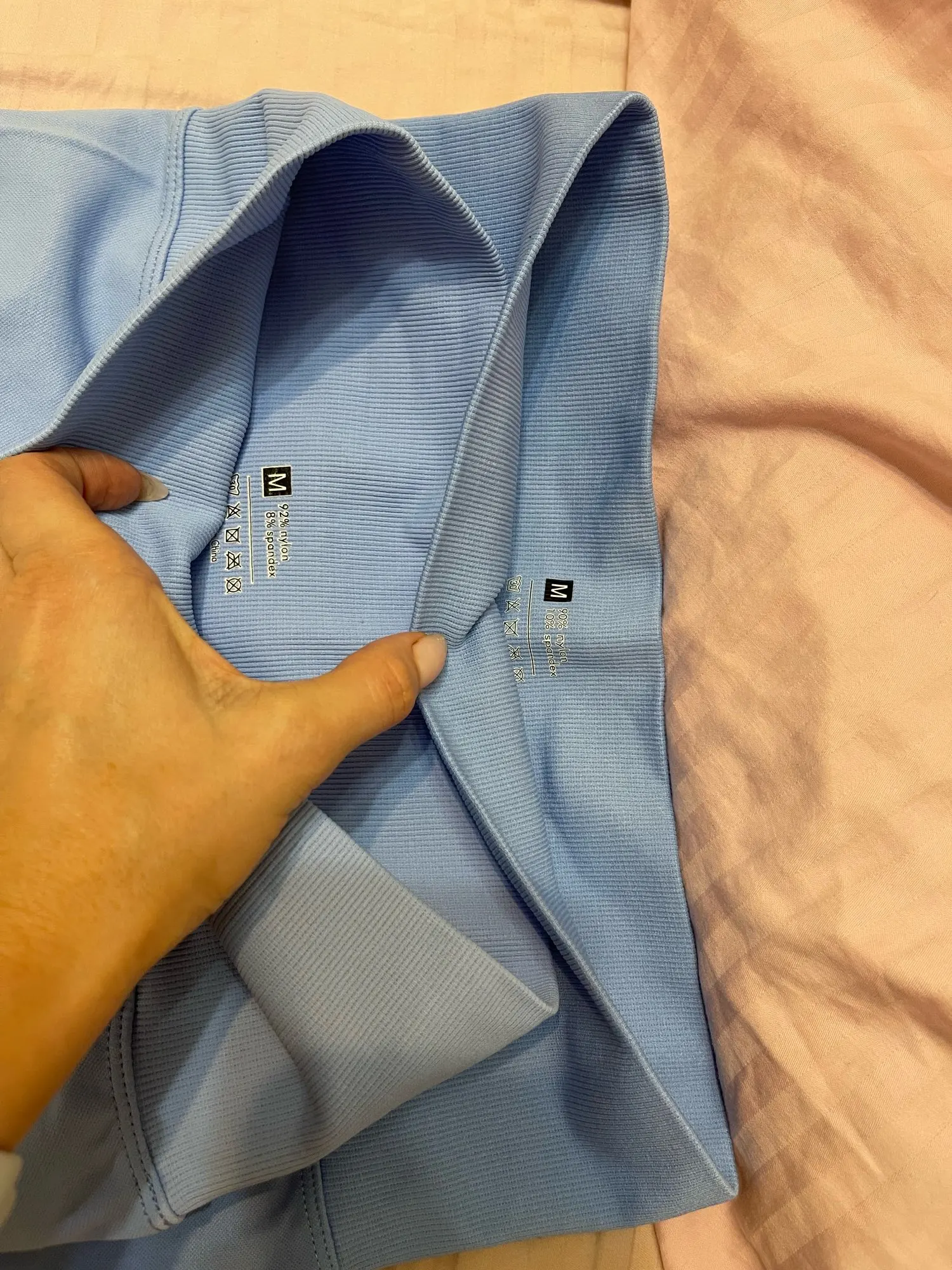 Отвратительного качества лосины! Пародия просто! Несуразные, в голенище супер узкие, талия широкая, посадка низкая. Заказала М при том что размер у меня Xs/S и натянуть нормально не смогла. Тк посадка укорочена, этот шов сзади жутко впивается, при тот что талия болтается на бедрах. Жесть. Носить конечно невозможно. Это подделка под лосины других производителей . Я купила у другого продавца оригинал и на фото демонстрирую отличия. Конечно открыла спор. Продавец в личке меня начал оскорблять и заблокировал, неадекватный. Благо вмешался Али и вернули деньги. Однозначно не советую!!!