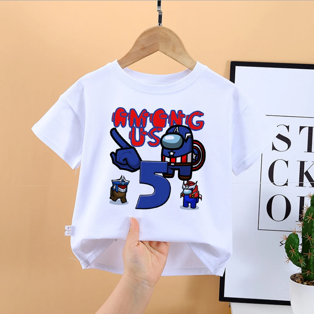 Детская Хлопковая футболка Among of Us, с принтом в виде цифр