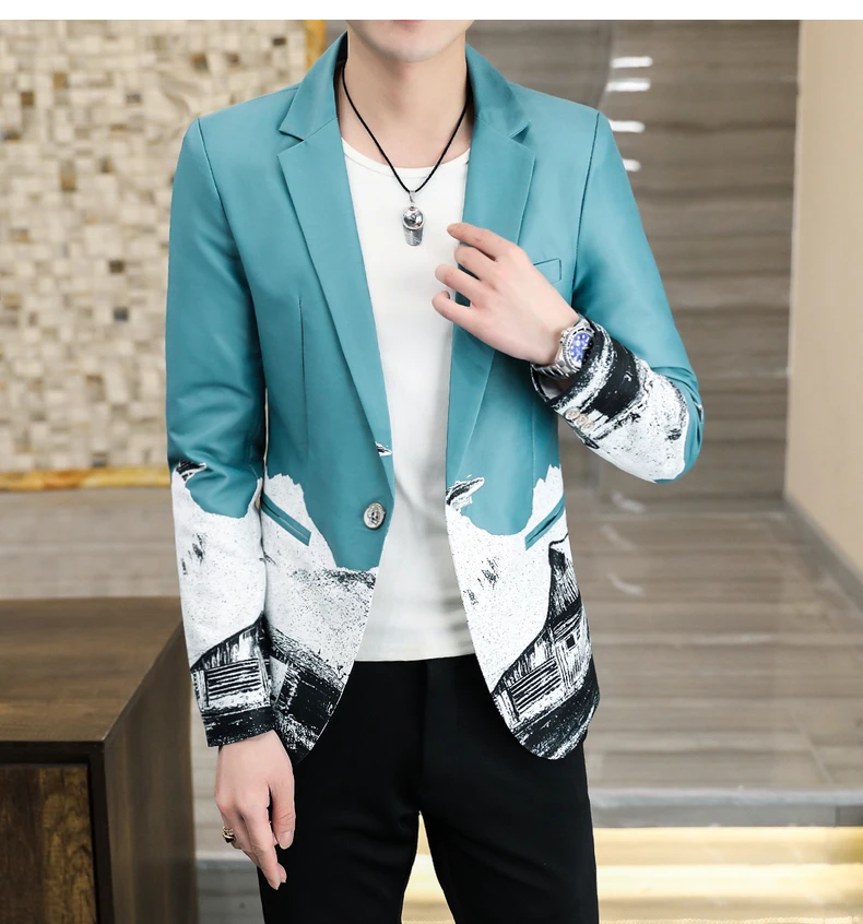 Мужской облегающий Блейзер, 2021 бутик, с принтом, для свадьбы, ночного клуба, сценивечерние, одежда для мужчин, размера плюс