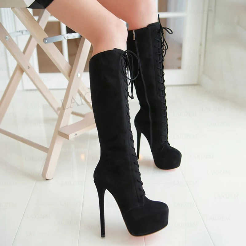 Сапоги женские высокие на платформе, с круглым носком и молнией сбо...