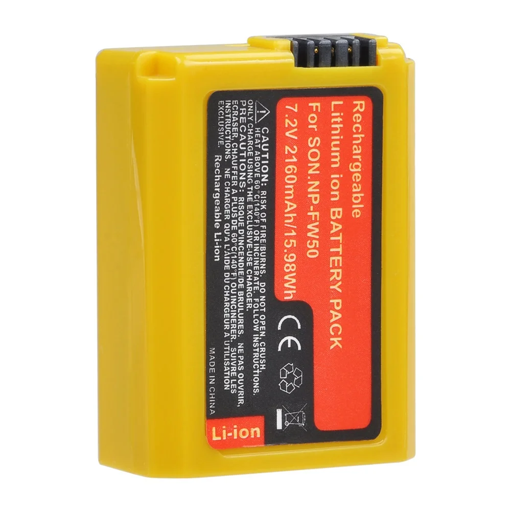 Желтый Аккумулятор для Sony A6000, A7, A7R II, A3000, NP-FW50, RX10 Mk iv, RX10 iii, SLT-A55VB, SLT-A35 NP FW50