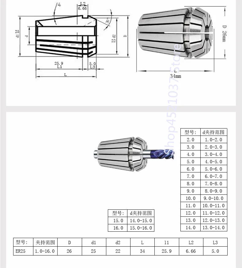 2 мм-16 мм ER25 цанговый патрон Держатель для инструмента пружинный цанговый станок для гравировки CNC фрезерный токарный инструмент шпиндель зажим двигателя