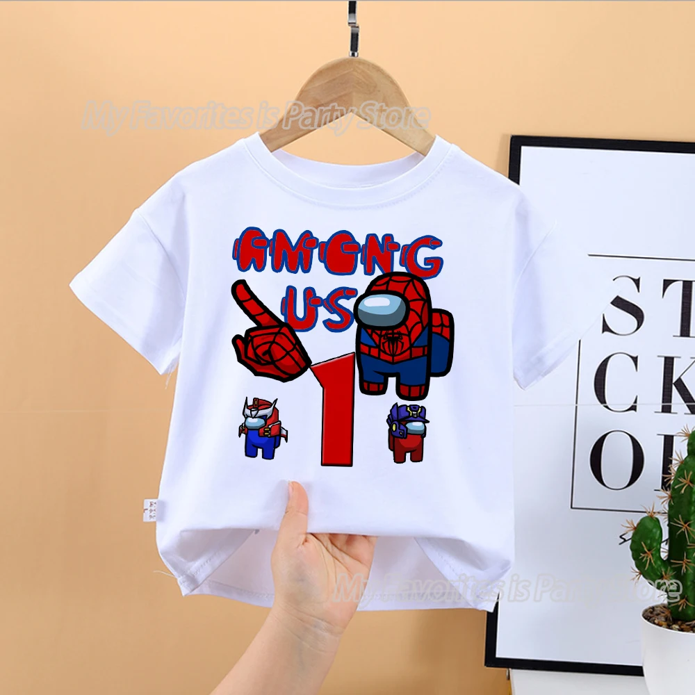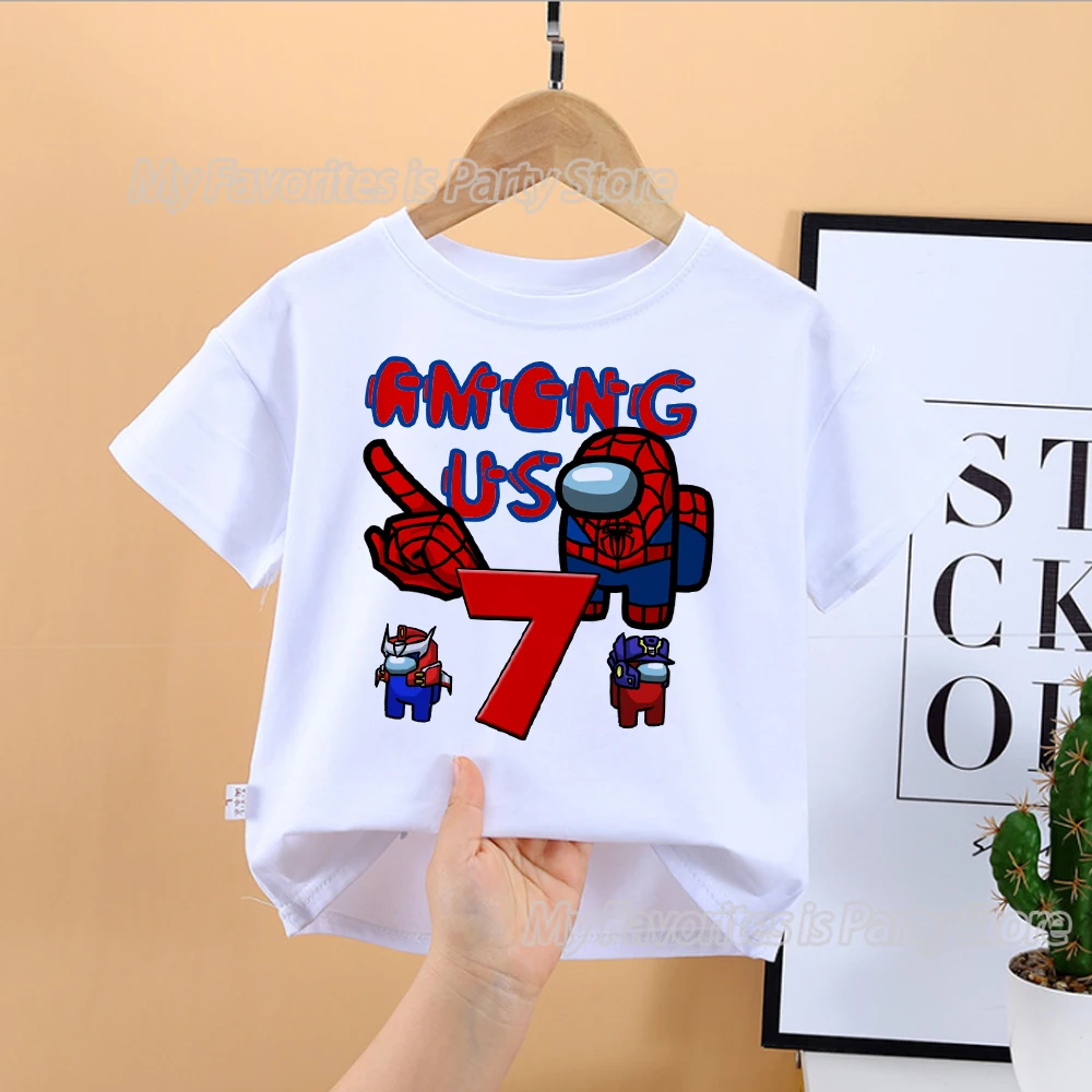 Детская Хлопковая футболка Among of Us, с принтом в виде цифр