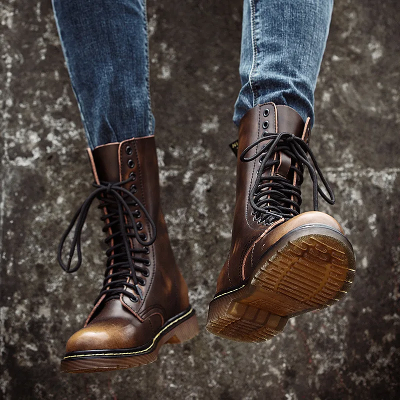 Женские ботинки, Британские кожаные ботинки для пар, высокие военные ботинки, водонепроницаемые и теплые длинные ботинки, мужская и женская модная обувь Martin