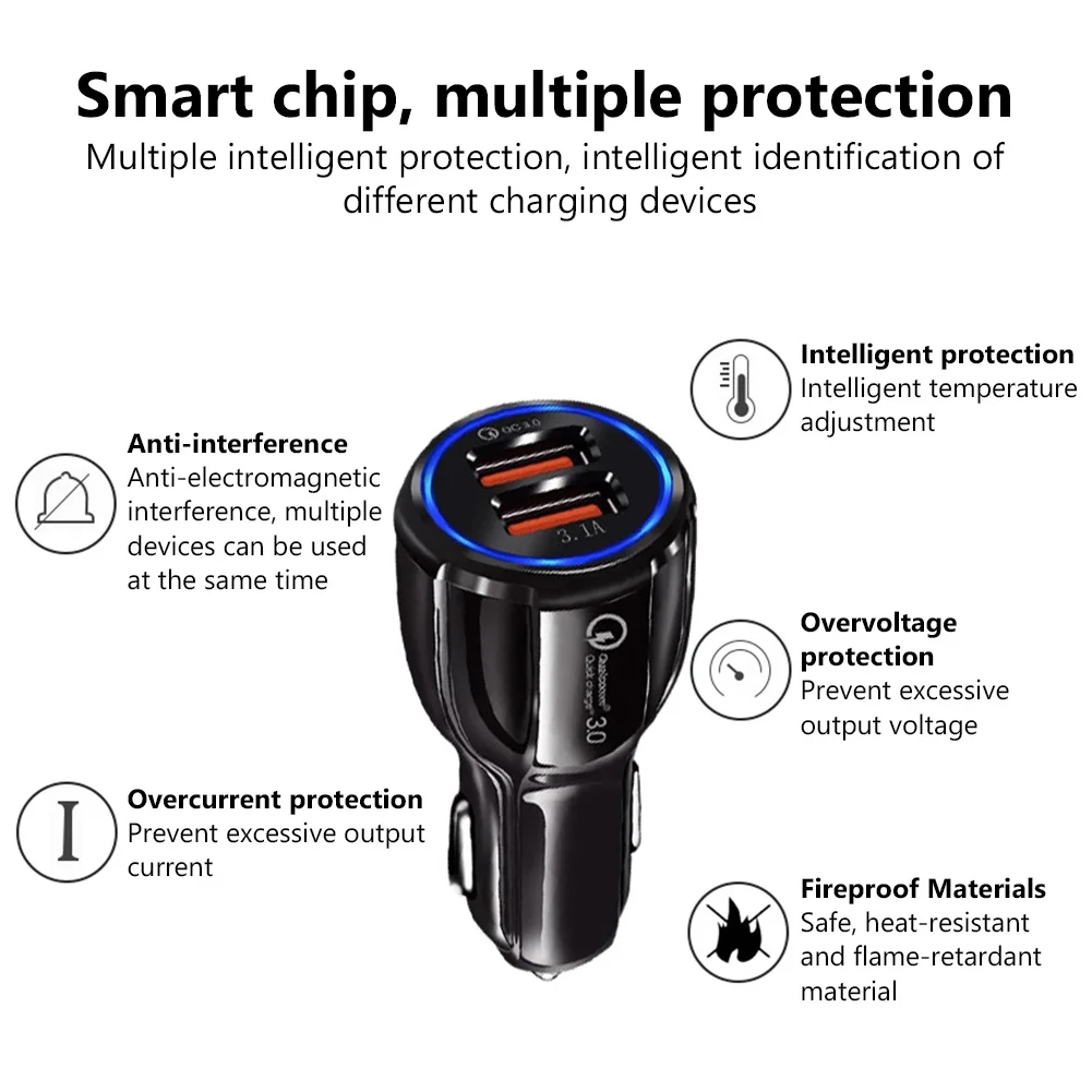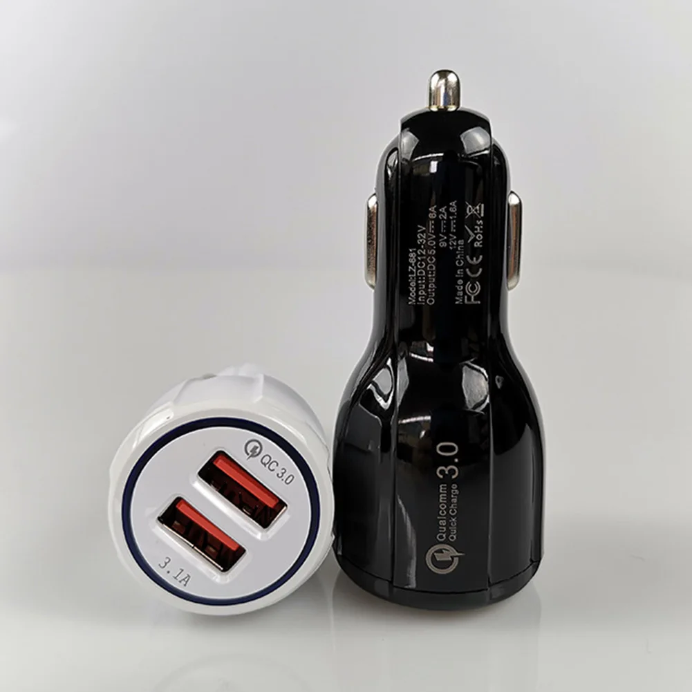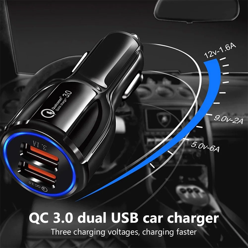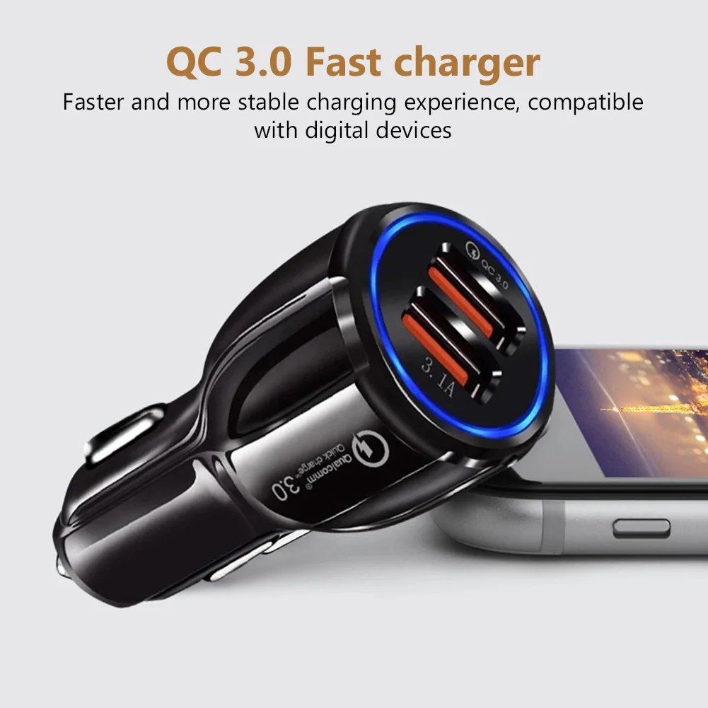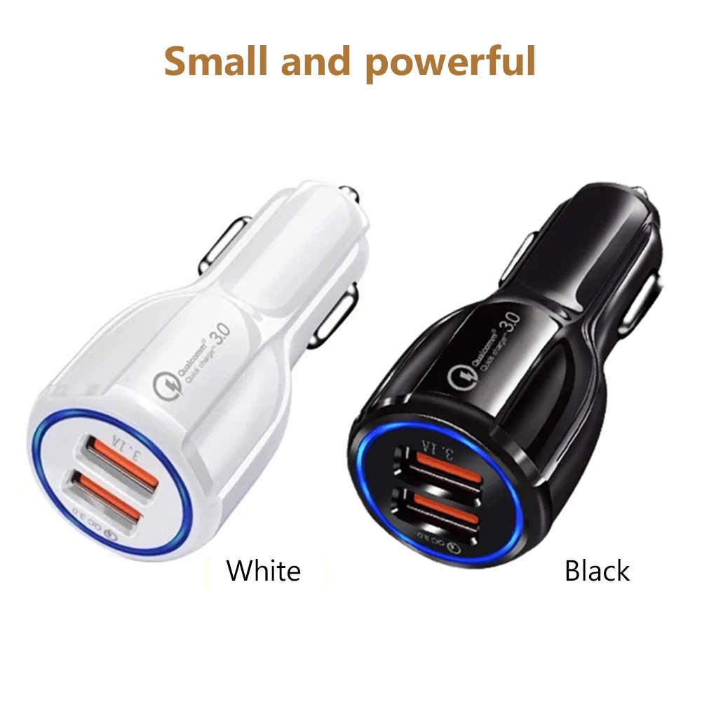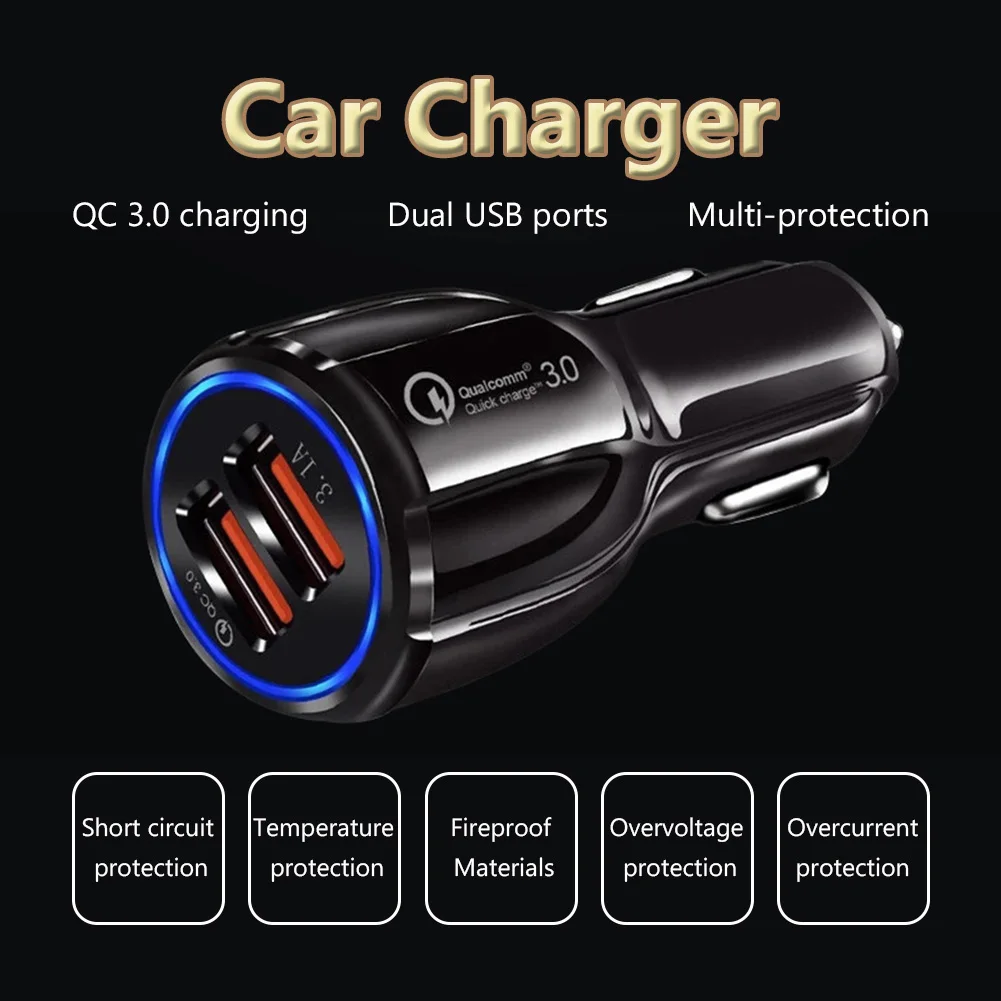 Автомобильное зарядное устройство PD QC 3,0, 3 А, двойной USB-разъем, адаптер для быстрой зарядки телефона для iPhone 12, 11, Xr, iPad, Samsung, Xiaomi, Huawei, LG