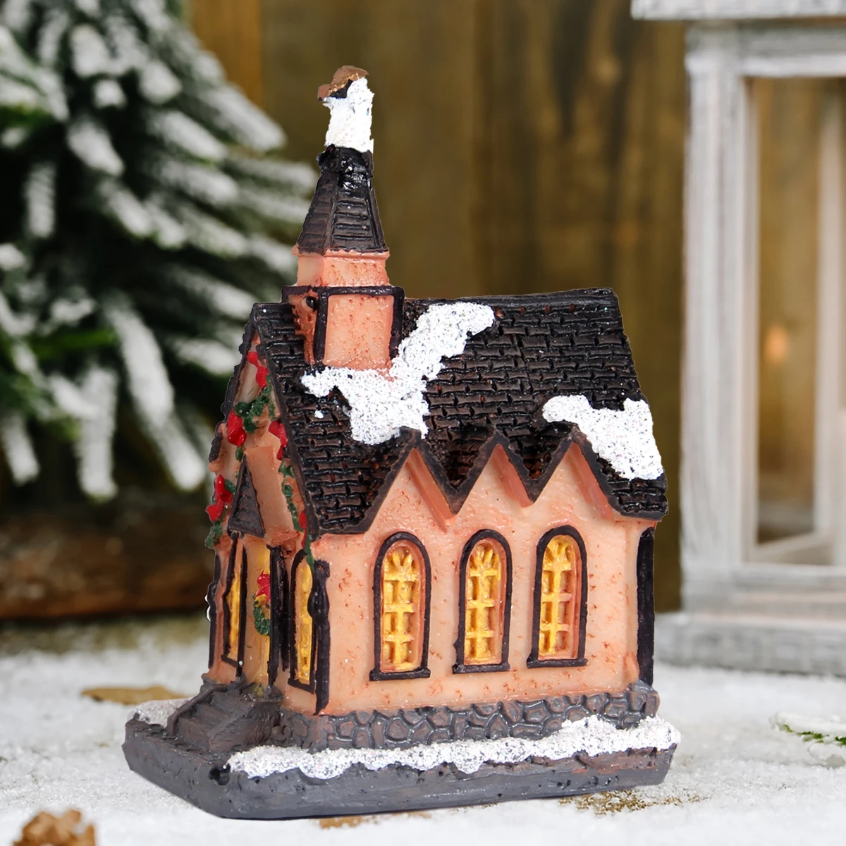 Рождественский домик, светящиеся фигурки деревни из смолы, миниатюр...