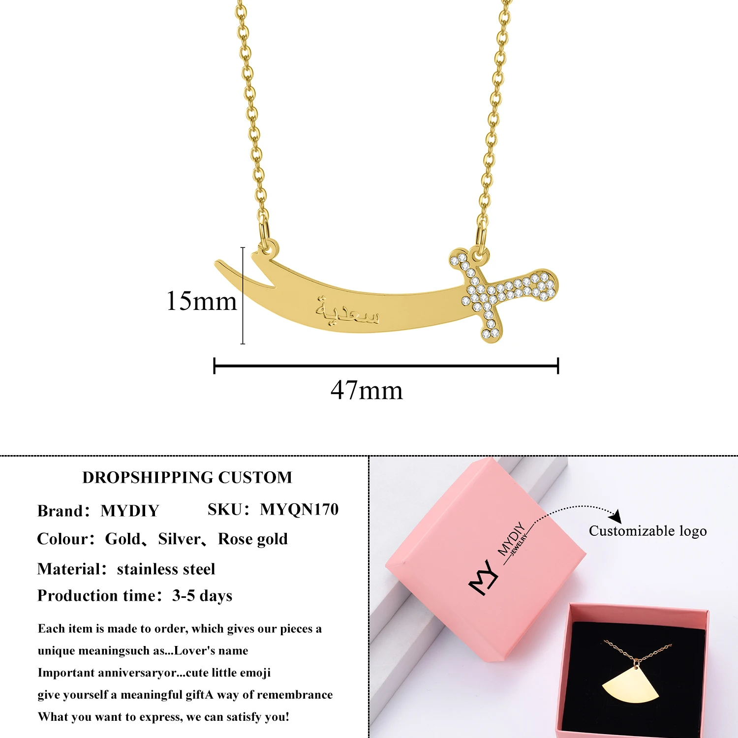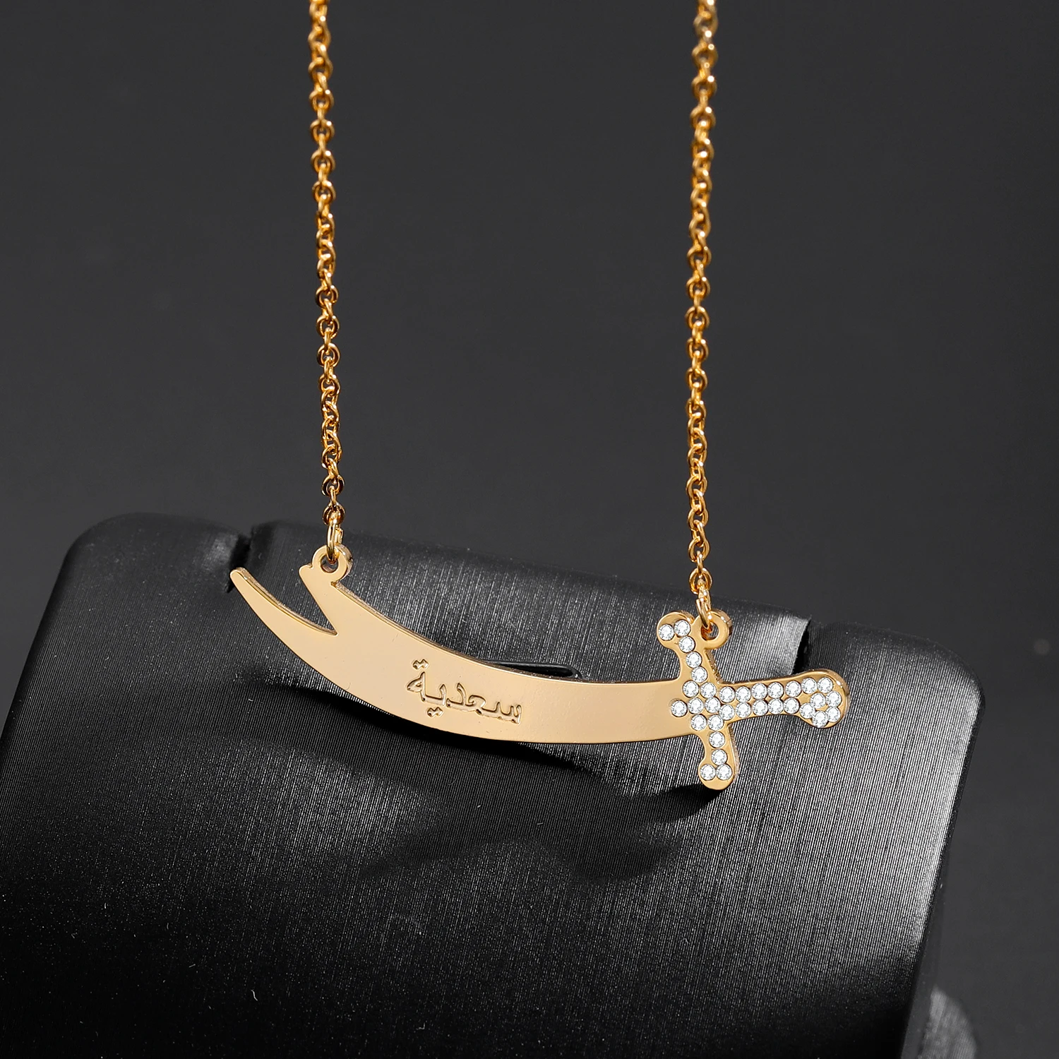 Ожерелье с позолотой 18 карат и названием Саудовской Аравии, ожерелье В рыцарском стиле, ожерелье из нержавеющей стали с глубокой резьбой унисекс, ожерелье с ножом, мужской подарок