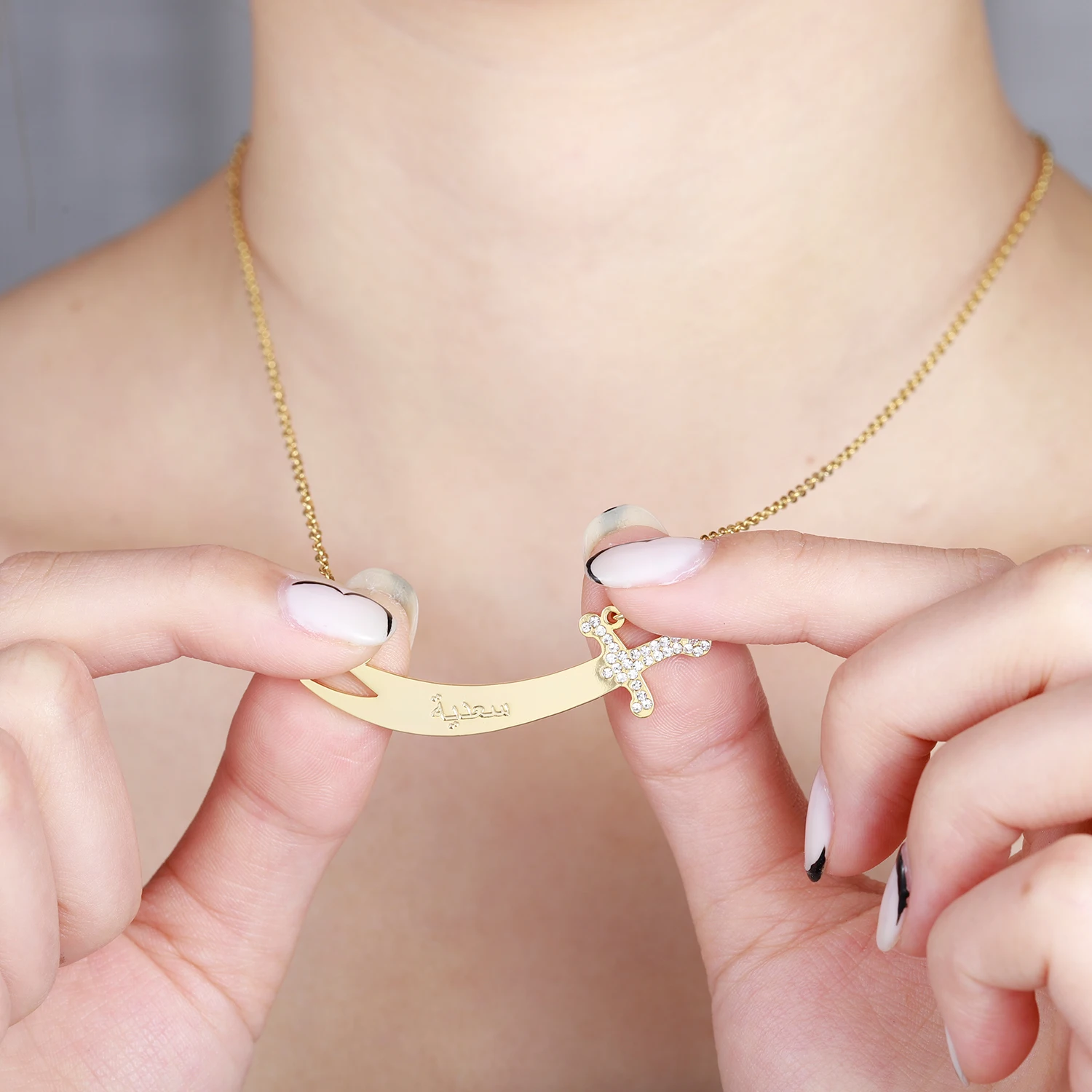 Ожерелье с именем полумесяца, арабское ожерелье с именем на заказ