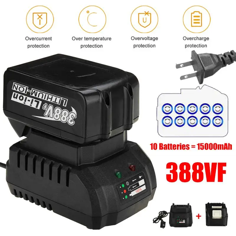 Перезаряжаемая батарея 388VF для интерфейса Makita, литиевая батарея 15000 мАч для электрического гаечного ключа, дрели, пилы, угловой шлифовальный станок, электроинструменты