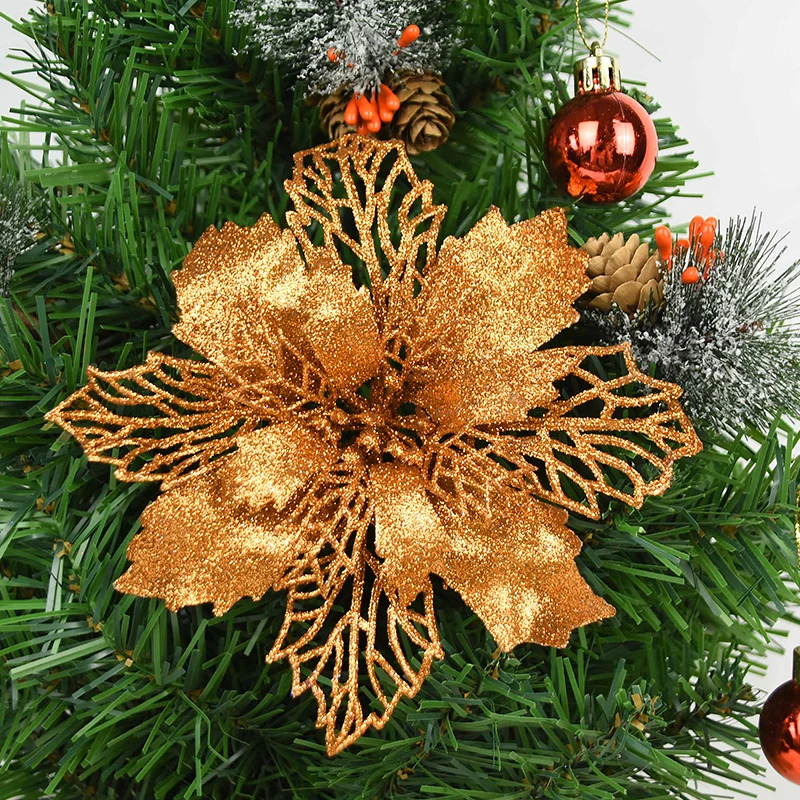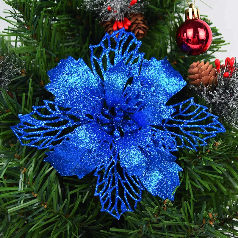 10 шт Блестящий искусственный цветок пуансеттия с ягодой Свадьба Новый год Рождество Вишневый цветок украшения орнамент с рождественской елкой