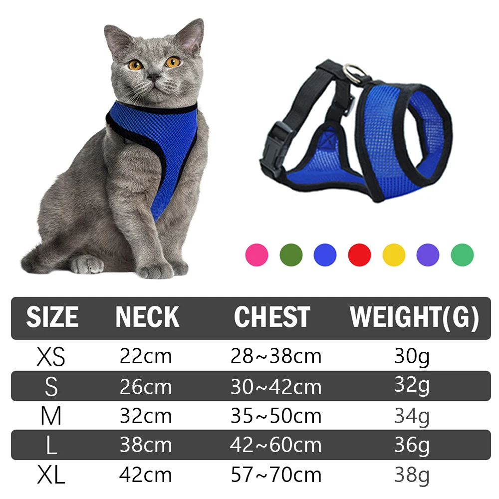 Регулируемый мягкий дышащий поводок для кошек, нейлоновый сетчатый жилет для собак, ошейник для щенков, ошейник для кошек, кошек, нагрудный поводок