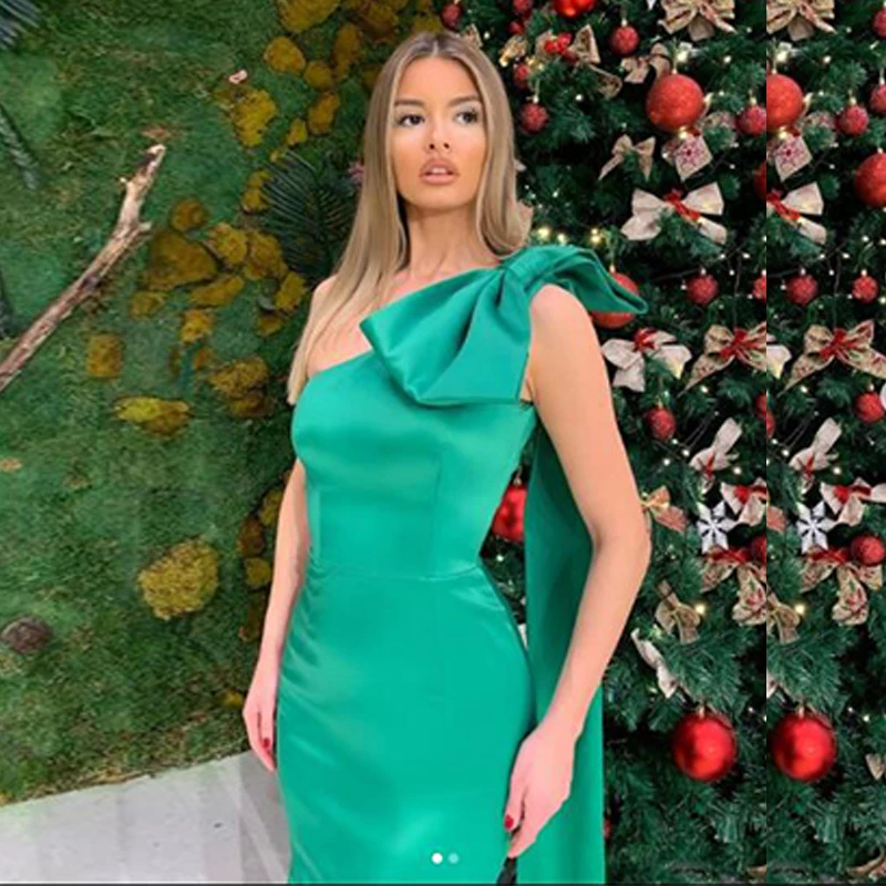 Атласное Вечернее платье-русалка без рукавов, с открытой спиной и бантом