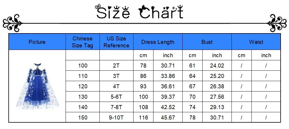 Тема: костюм принцессы для девочекМатериал: полиэстер, сетка, другоеВес: около 0,15-0,35 кг/шт.Возраст: От 2 до 10 летРазмер CN: 100-110-120-130-140-150Принцесса: Анна, Эльза, Белоснежка, Белль, Спящая красавица, жасмин, маленькая Русалка, Золушка, Моана, Рапунцель, София, отважный, Елена, Мулан, динкербелл, вампир, единорог.Посылка: по вашему выбору + Opp сумка