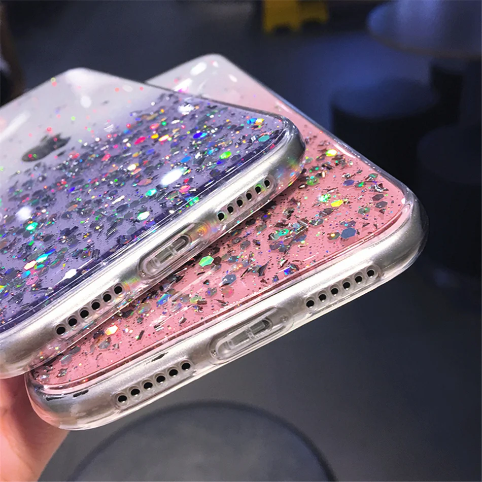 Роскошный чехол для телефона с градиентными блестками, Прозрачный б...