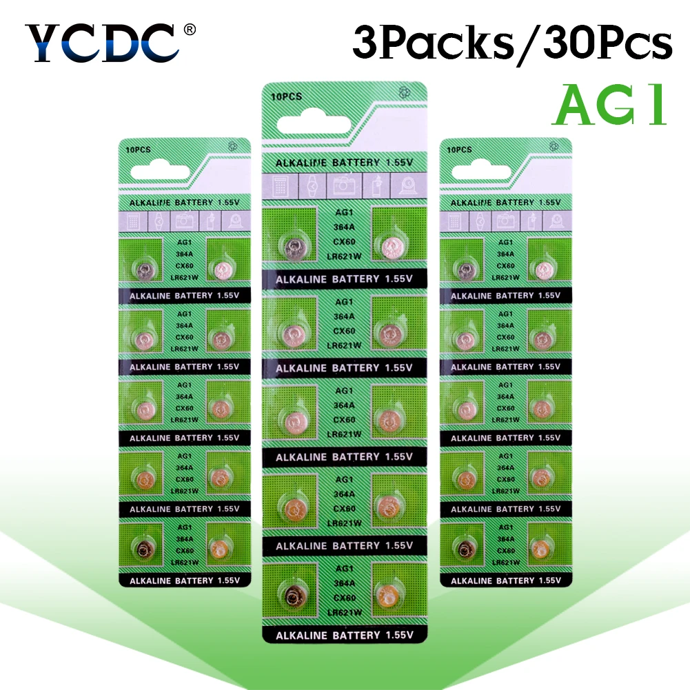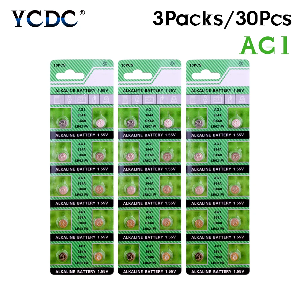 YCDC 30 шт. AG1 364 SR621 SR60 SR60L Щелочная монетная ячейка Sr621sw TR621SW V364 кнопочные батареи для часов