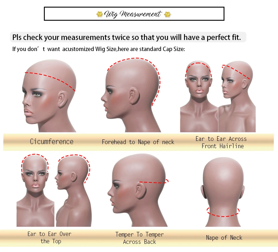 Пожалуйста, проверьте свои измерения дважды, чтобы у вас была идеальная посадка, itf вам не нужен акустомированный Размер парика, вот стандартный размер крышки