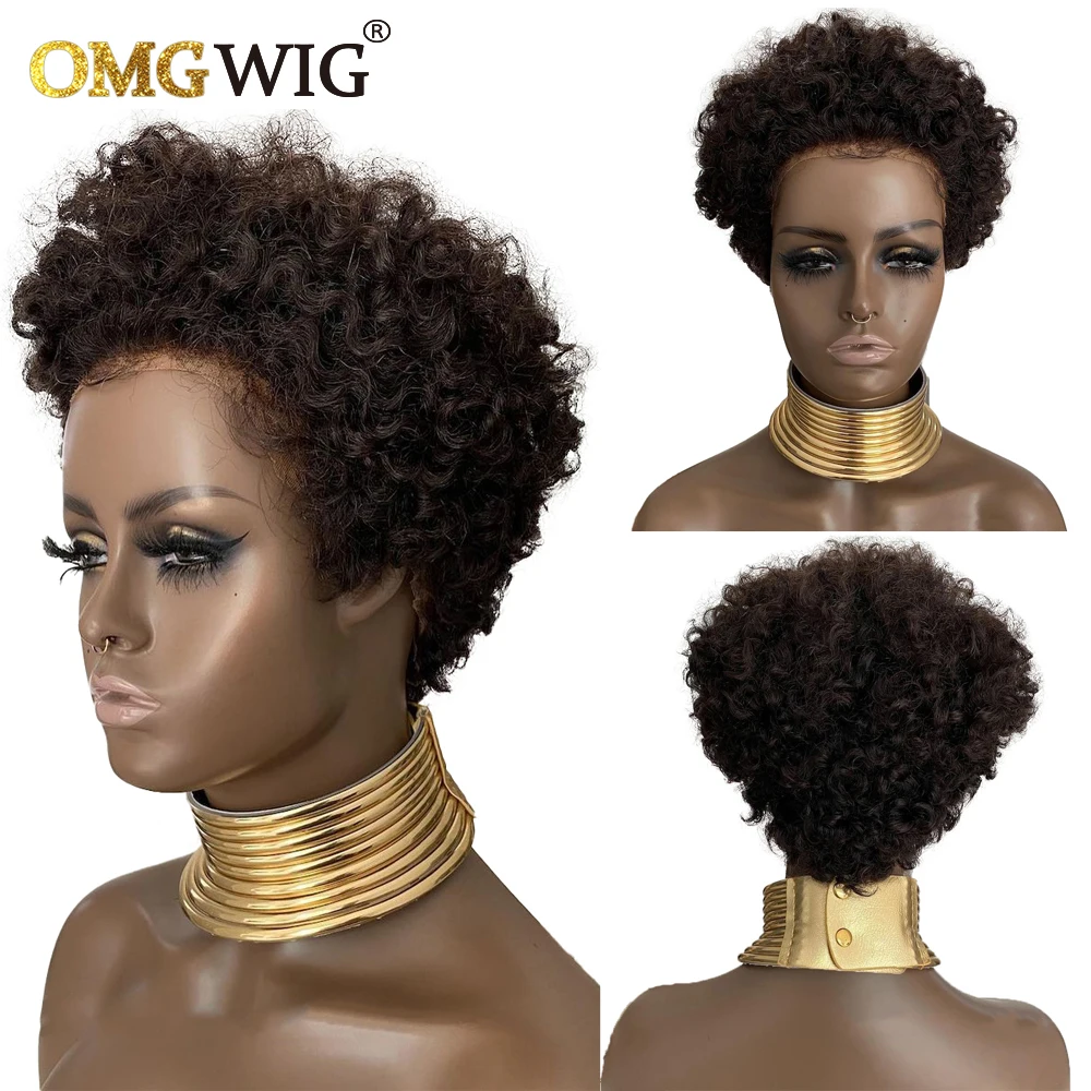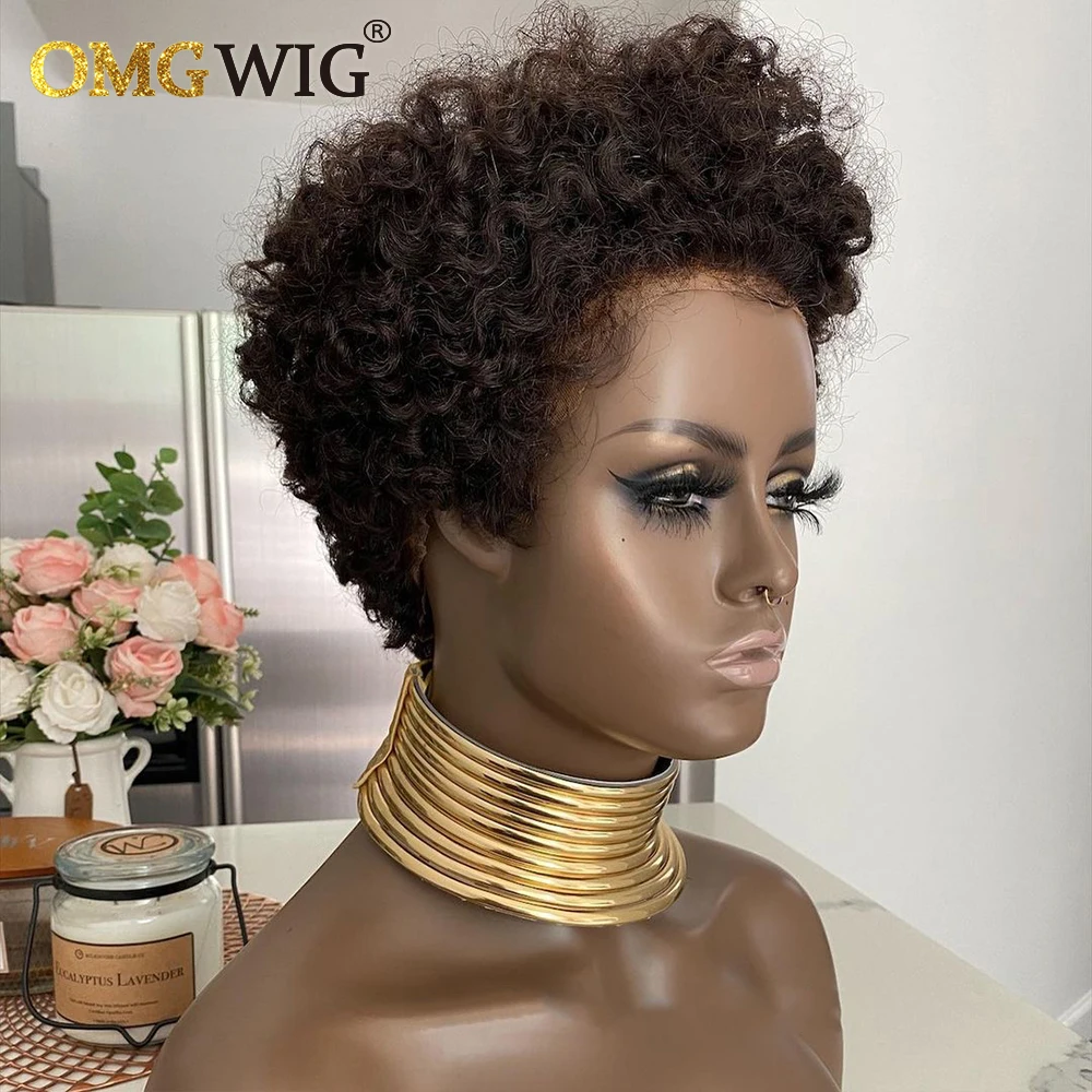 Короткий женский парик Боб кудрявые, HD прозрачные кружевные передние парики из человеческих волос, бразильские натуральные необработанные волосы, парик плотностью 150%