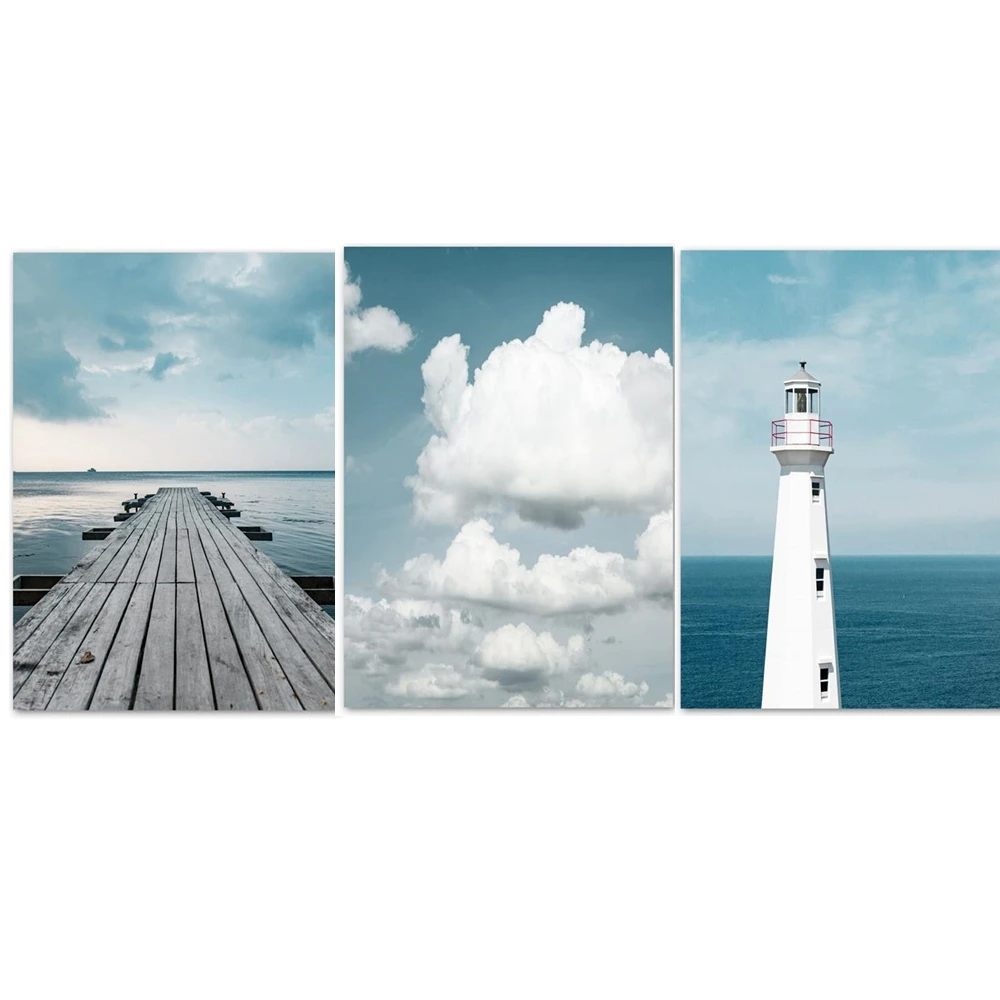 Постер без рамки в скандинавском стиле с изображением пейзажа, морской дороги, океана, лодки, маяков, украшение интерьера гостиной, настенное искусство, Картина на холсте