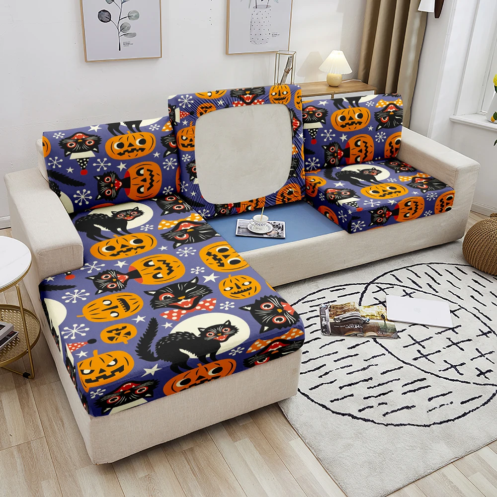 Чехол на сиденье, диван Хэллоуин, с принтом злых тыкв, для гостиной, защита для угловой диванной подушки, 1-4 места