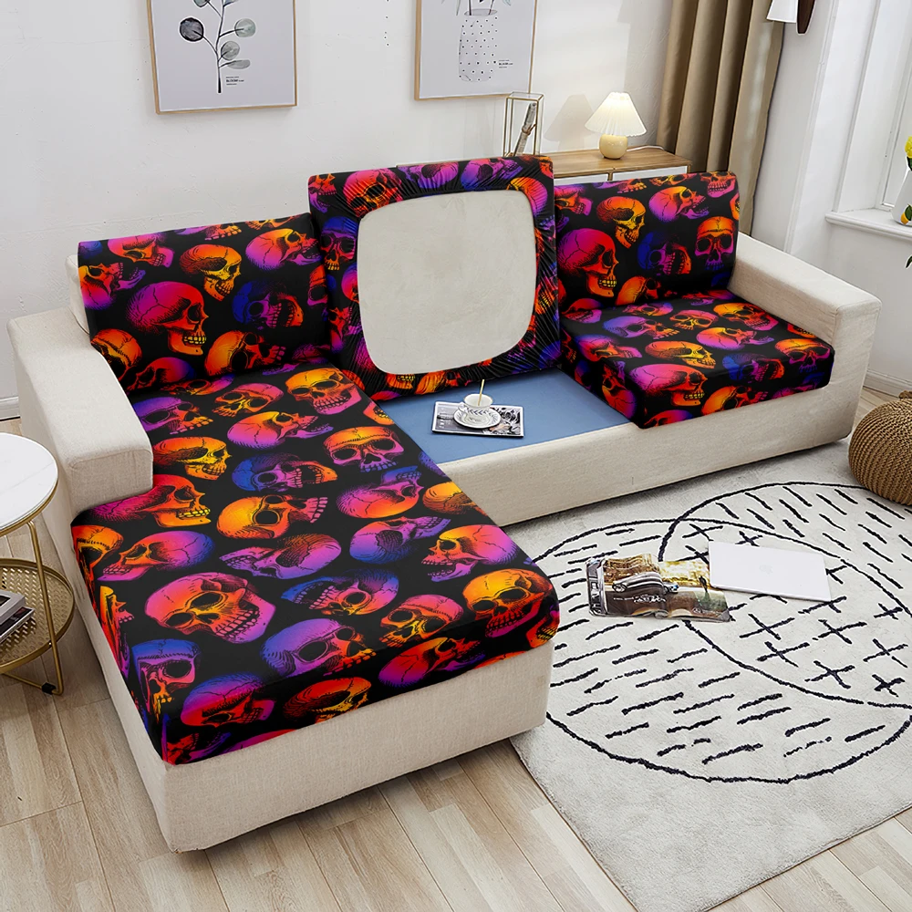 Чехол для дивана с принтом черепа, эластичный чехол для дивана, защ...