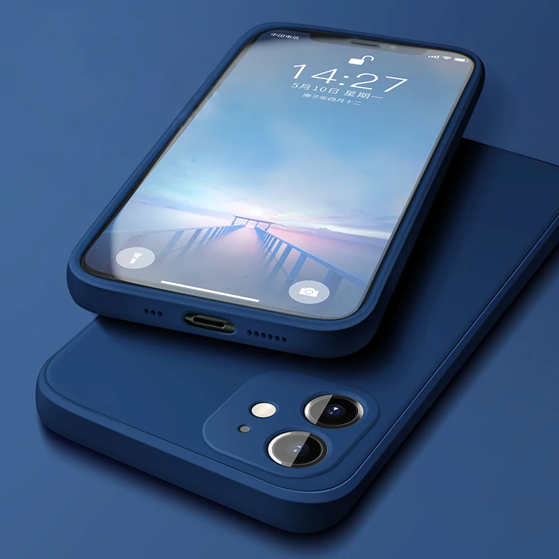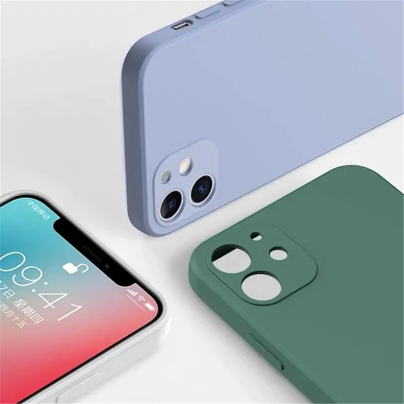 Роскошный квадратный Мягкий чехол из жидкого силикона для iPhone 12...