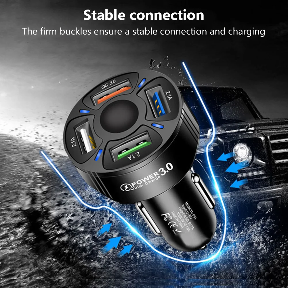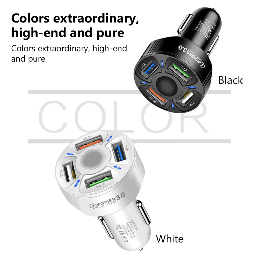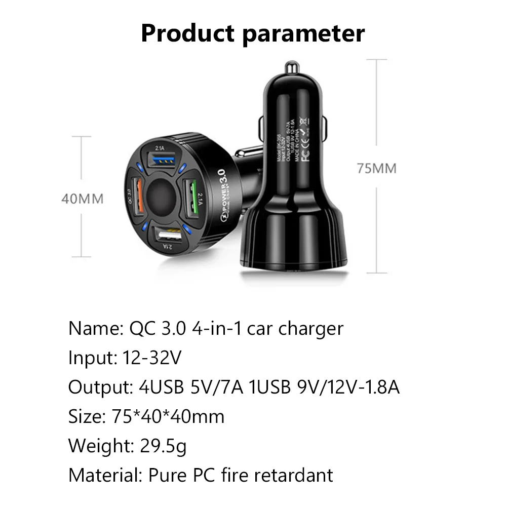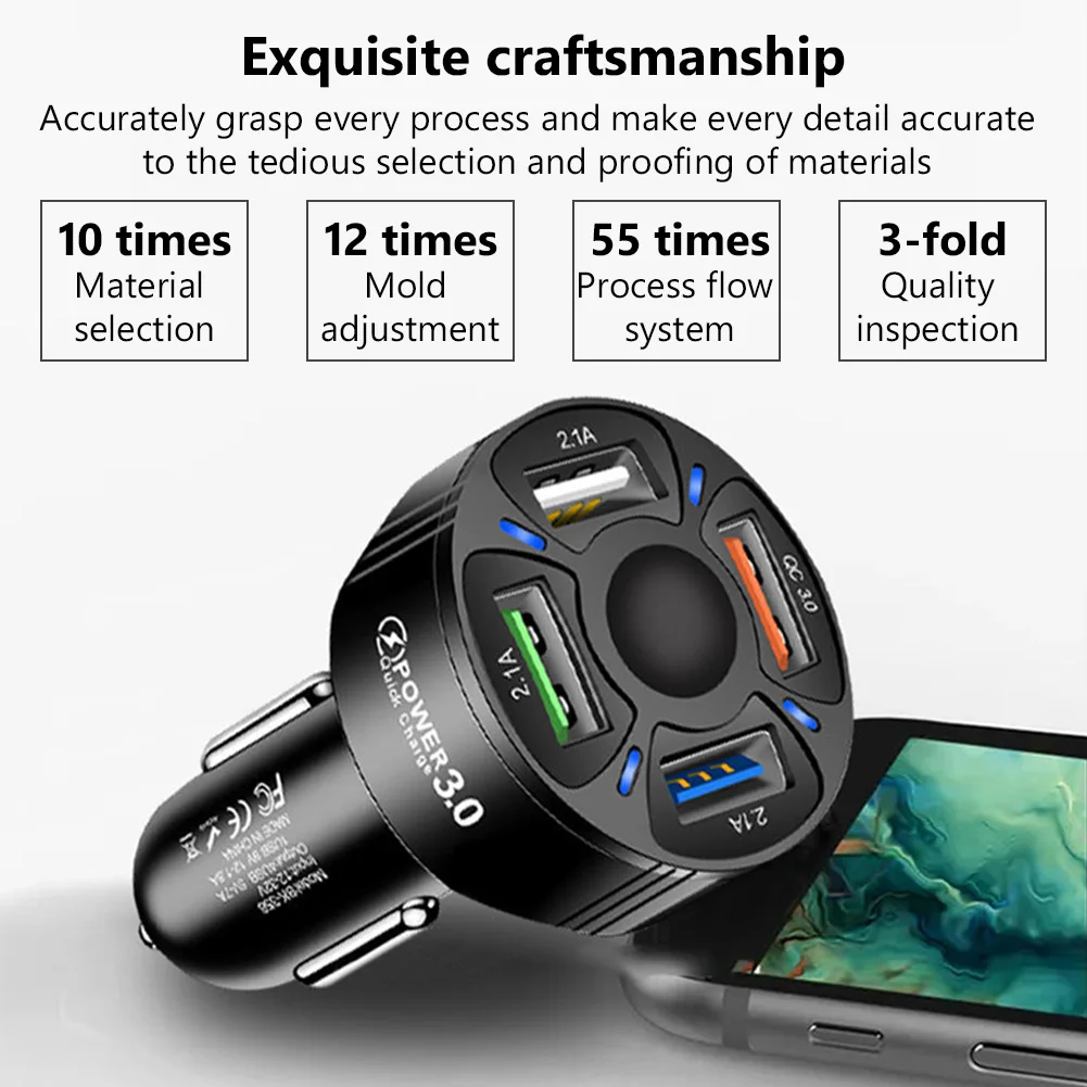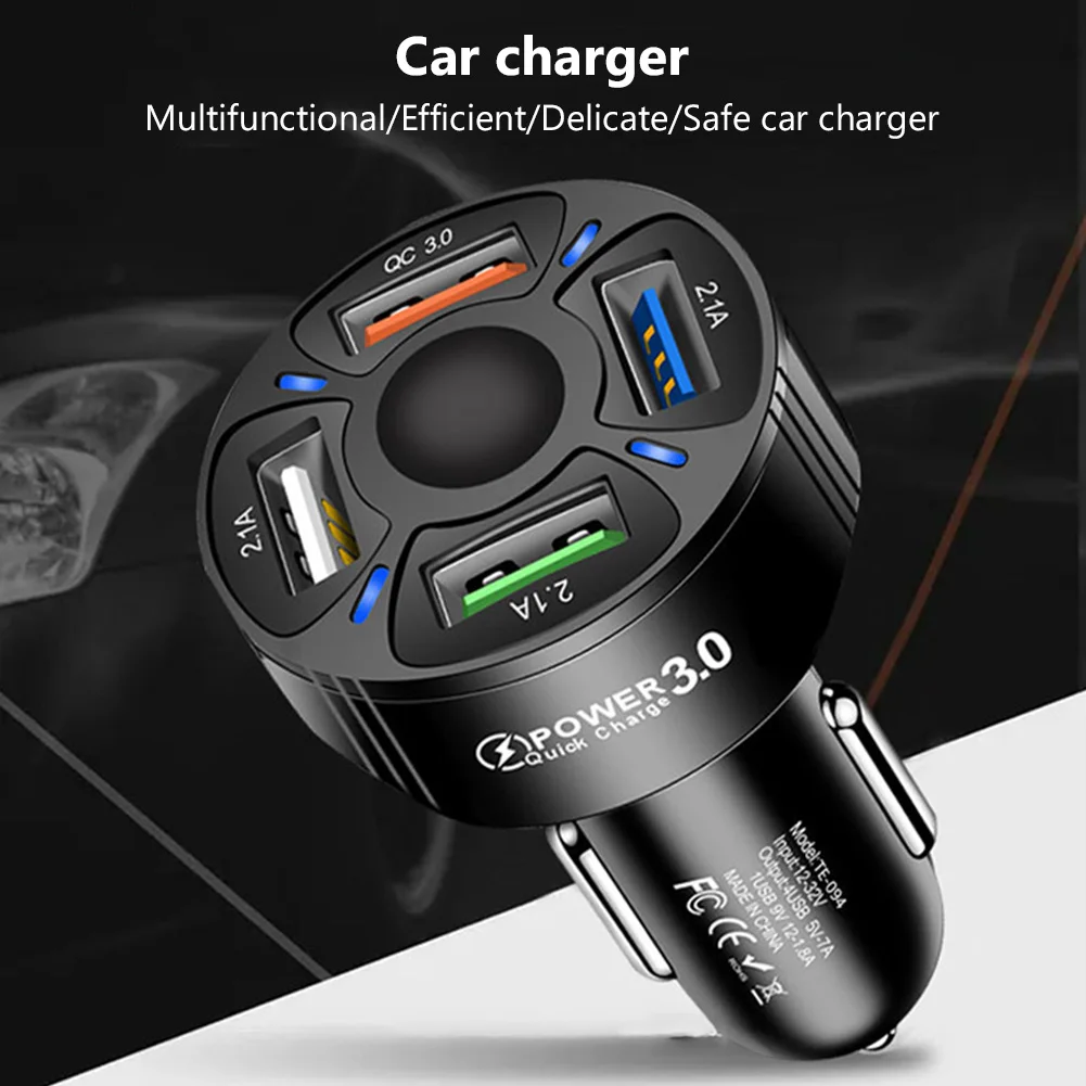 Автомобильное зарядное устройство QC 3,0 с 4 USB-портами и светодиодной подсветкой