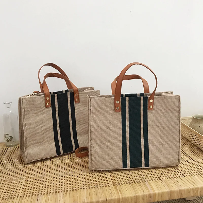 Вместительная Простая Сумка-тоут, женская модная сумка для лета, Женская винтажная Сумка-тоут в полоску