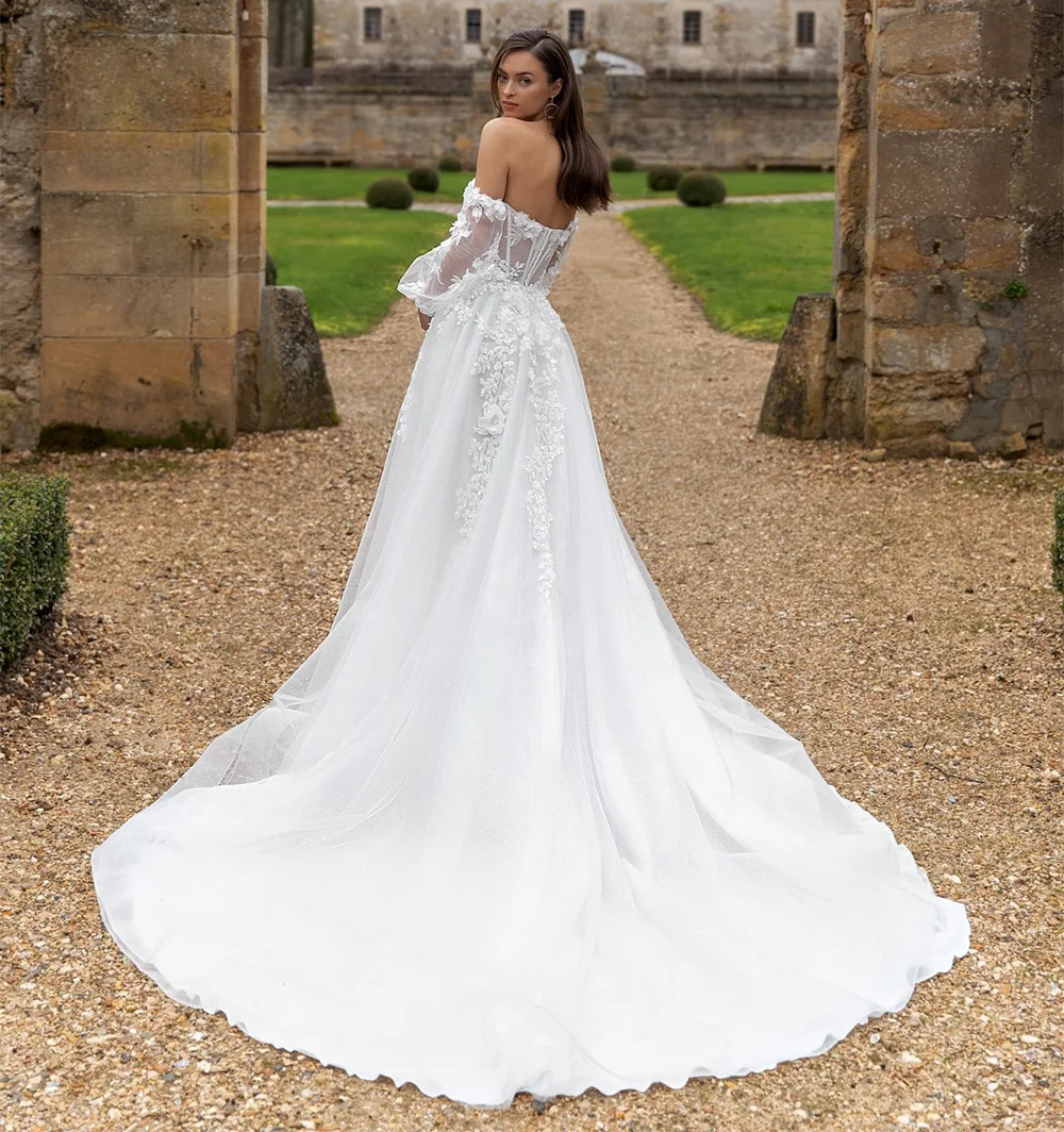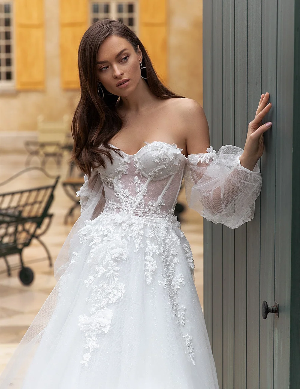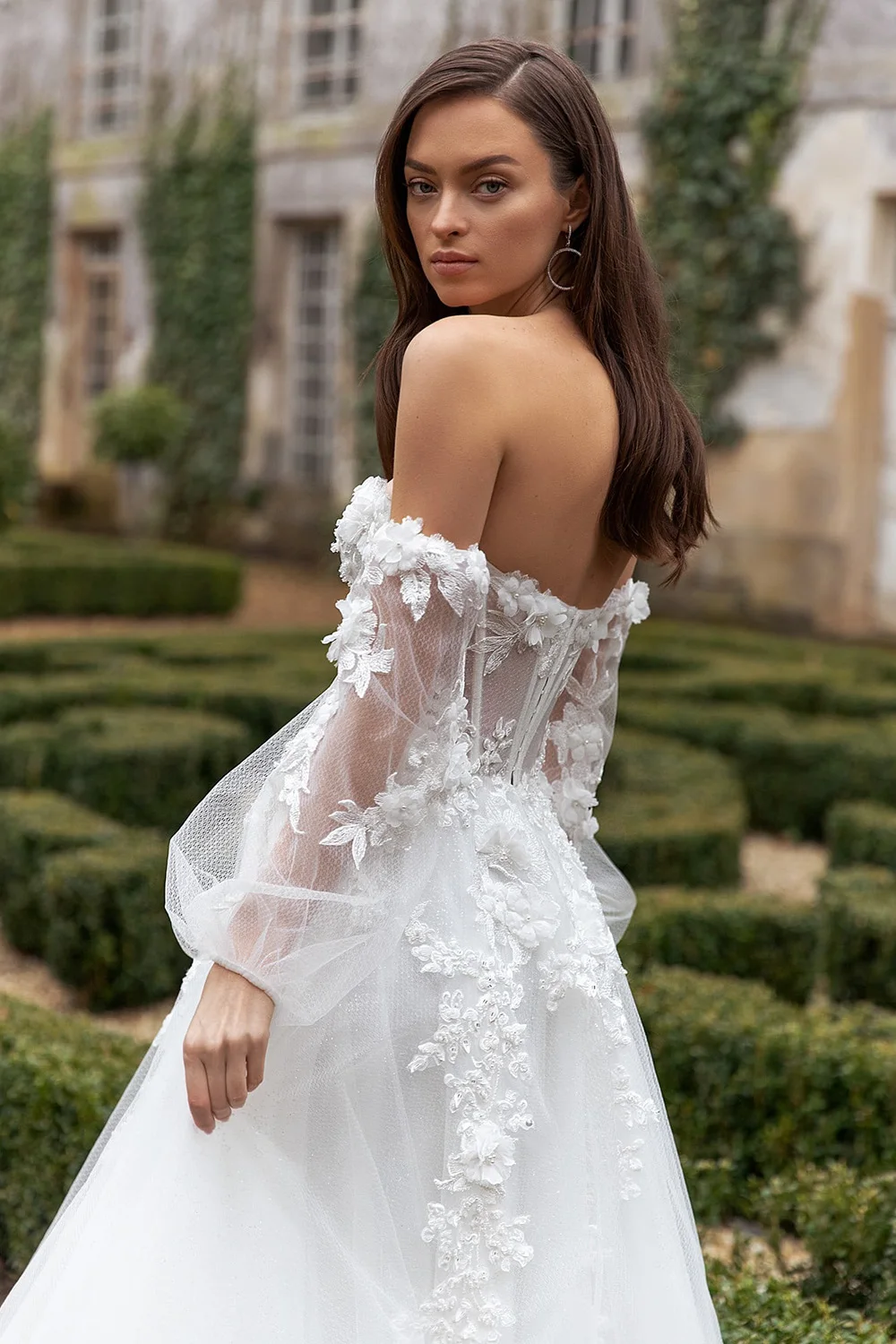 Свадебное платье Sevintage в стиле бохо, цветочные 3D рукава с буфами, кружевные аппликации, трапециевидные свадебные платья, свадебное платье принцессы