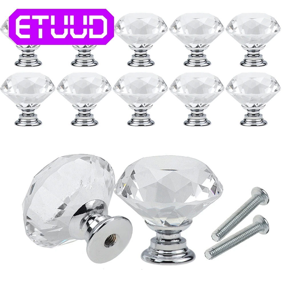 10 шт.компл. 20-40 мм, ручки из хрустального стекла, ручка для выдвижных ящиков шкафа, дверная ручка, ручка для шкафа в форме алмаза, аксессуары для домашней мебели
