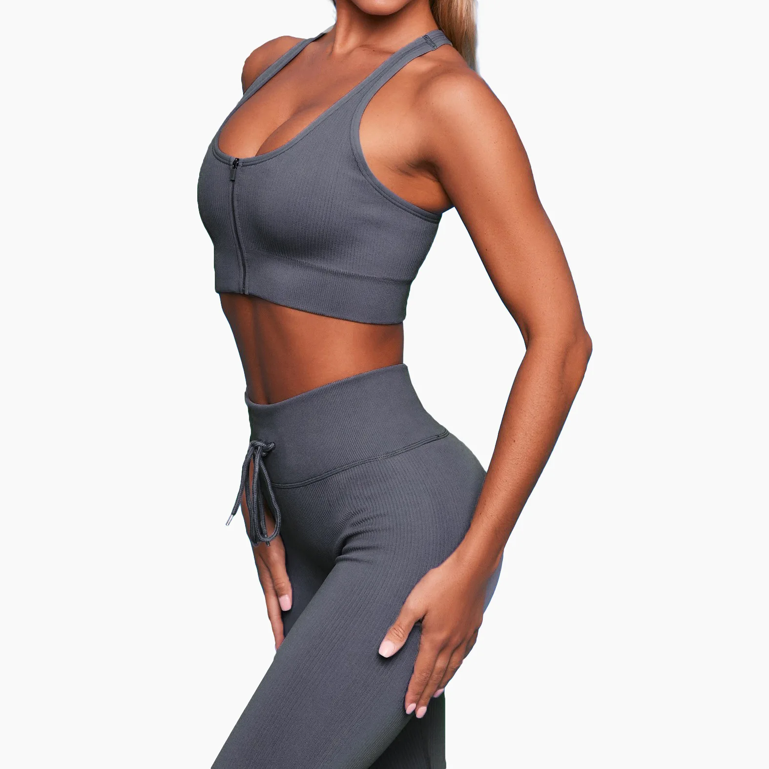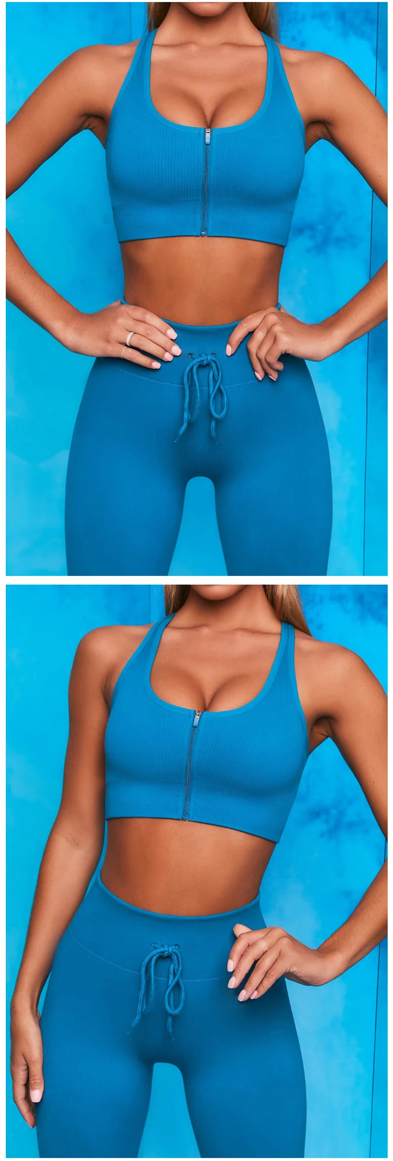 Бесшовный комплект для йоги на молнии, женский укороченный топ из двух предметов, бюстгальтер, шорты с завязками, спортивный костюм, одежда для тренировок, спортивная одежда