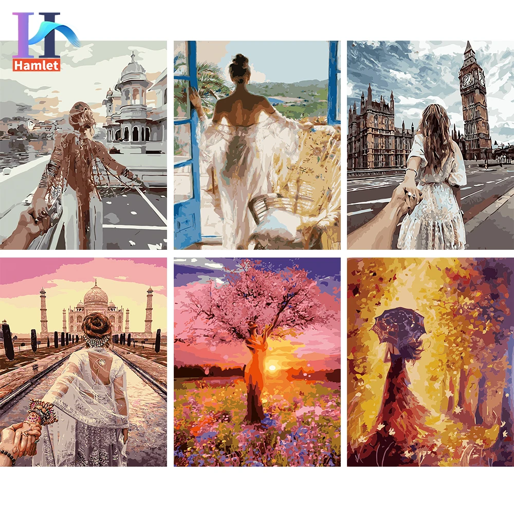 Diy Рисование по номерам девушка вид сзади акриловая краска по номерам для Aldult портретный пейзаж на нулевой основе искусство ручной работы домашний декор