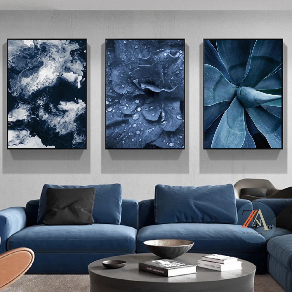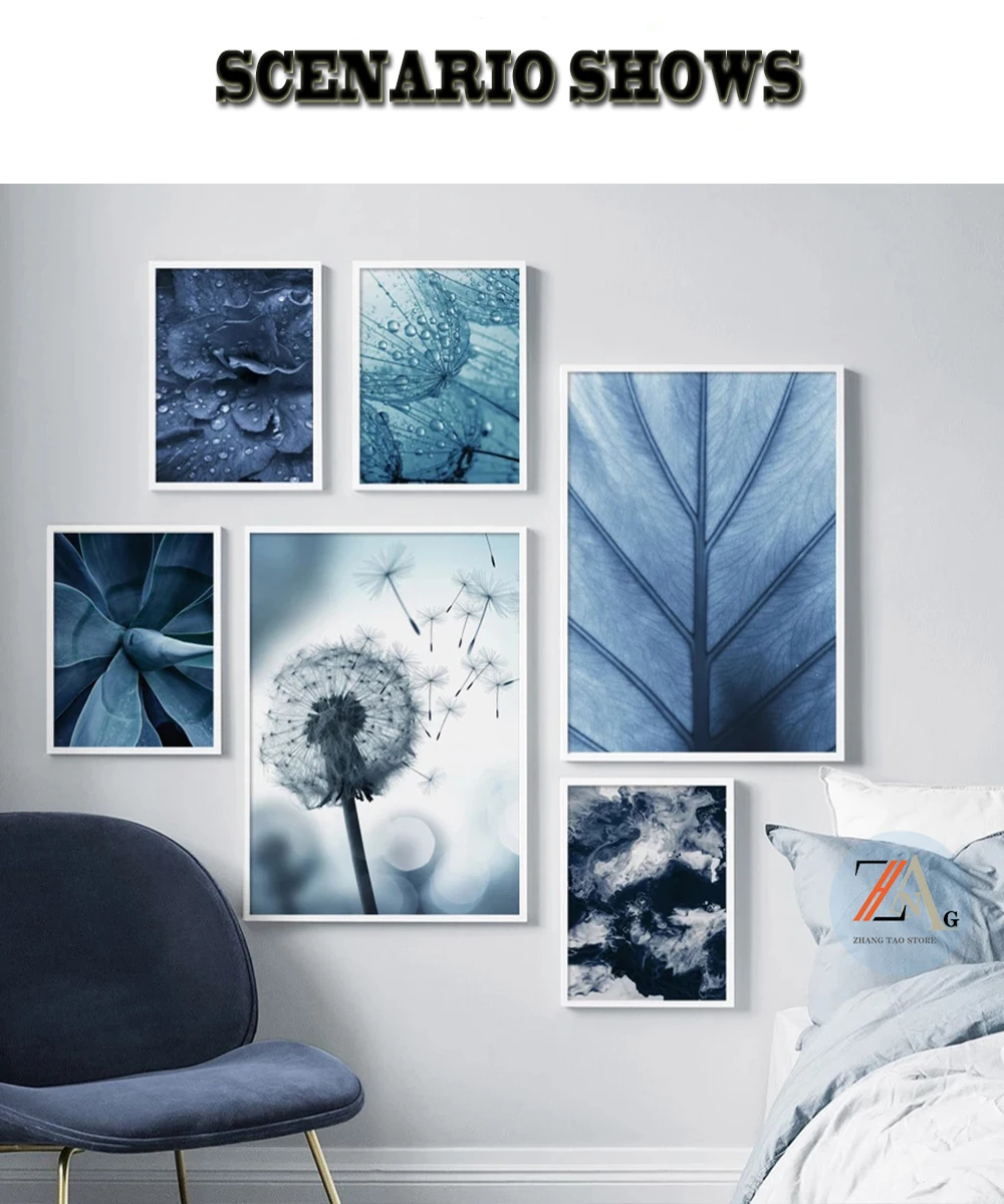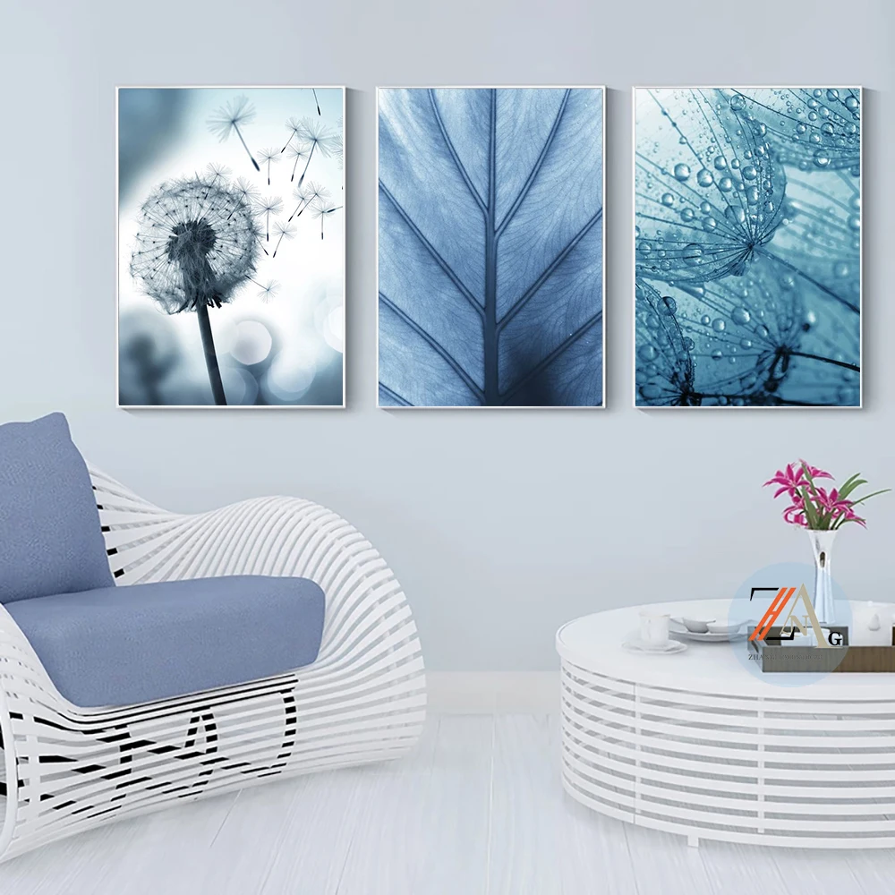 Голубой Одуванчик лист суккуленты Картина на холсте скандинавские плакаты и принты настенное украшение для современного дома Декор для комнаты картины