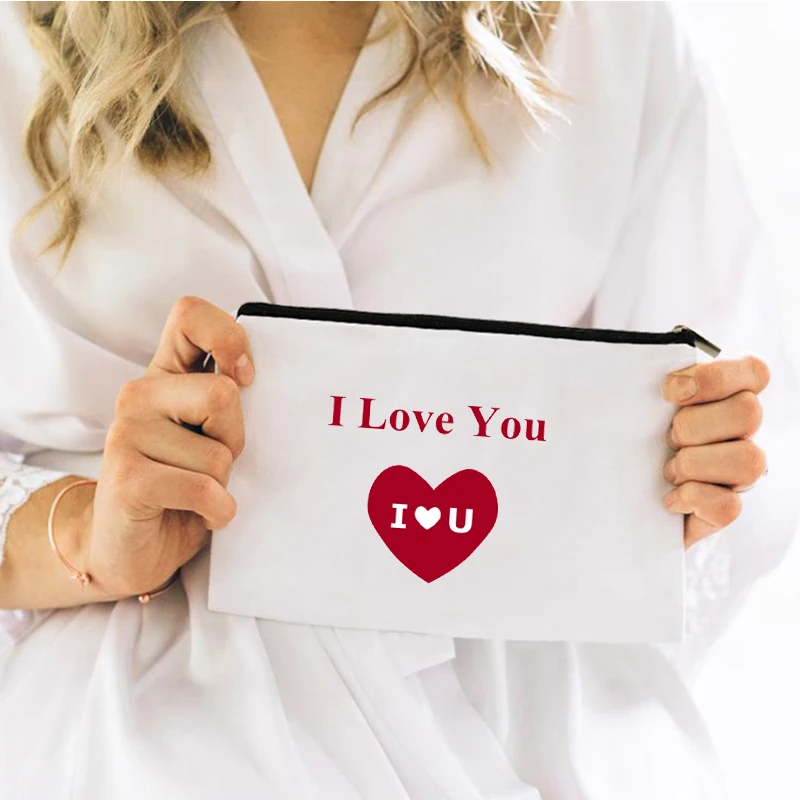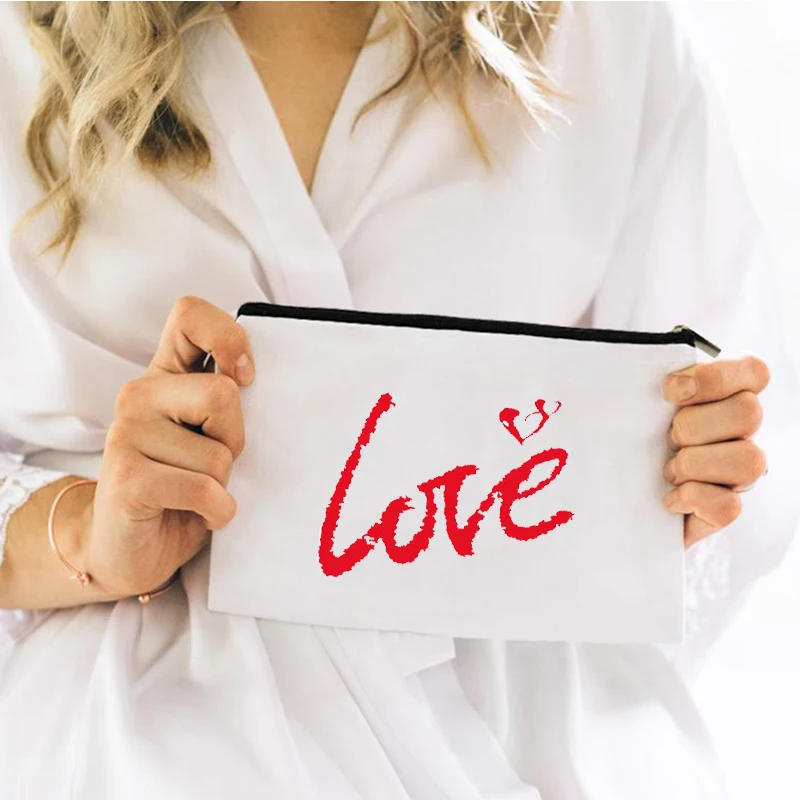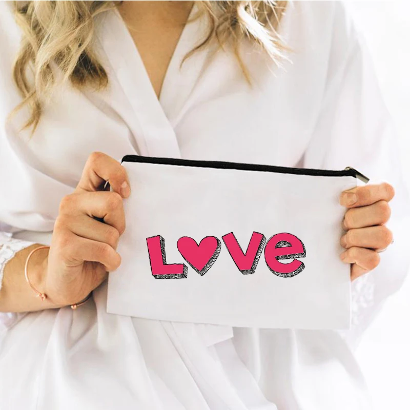 Косметичка с надписью LOVE, модная белая холщовая портативная Деловая и удобная, может быть изготовлена по индивидуальному заказу, дешевая Женская