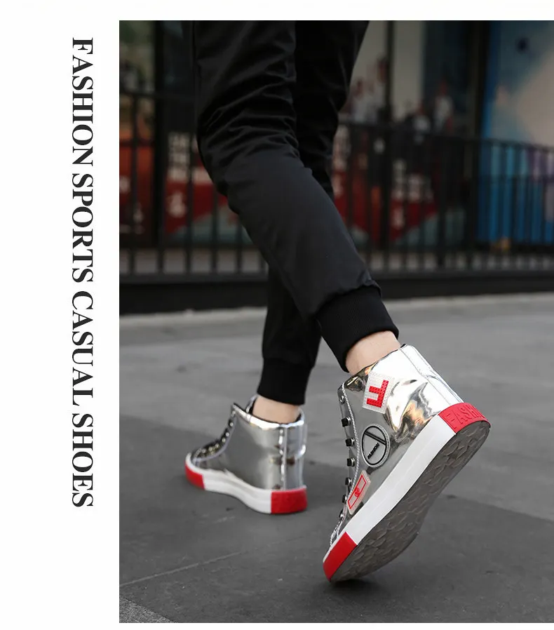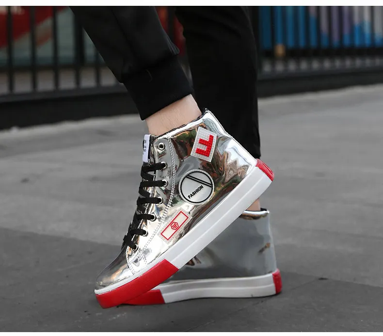 Кроссовки мужские на платформе, повседневная спортивная обувь с высоким верхом, на шнуровке, роскошные модные эспадрильи, золотистого цвета, большие размеры, B39